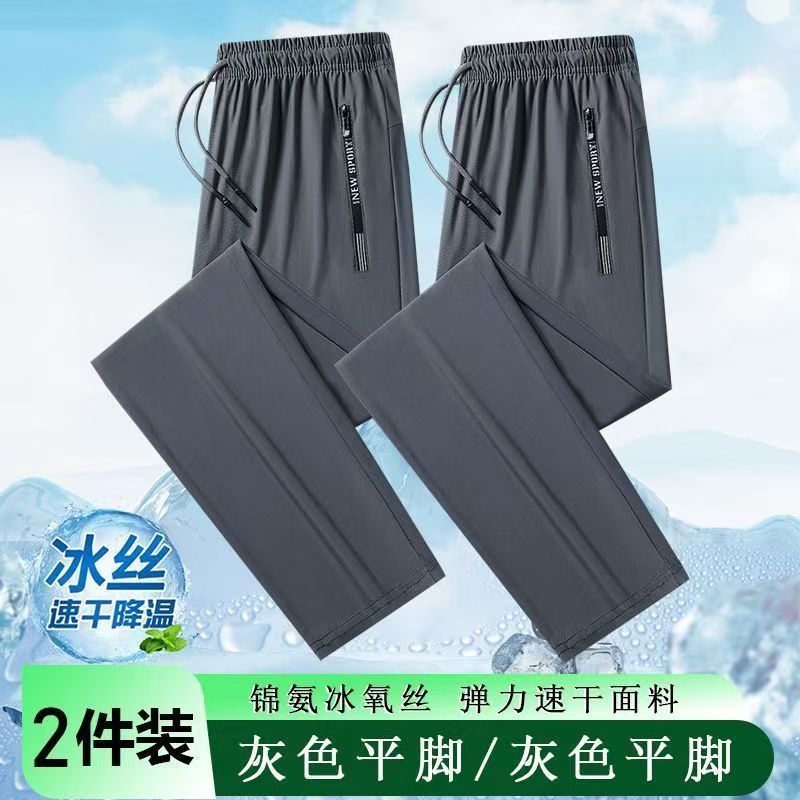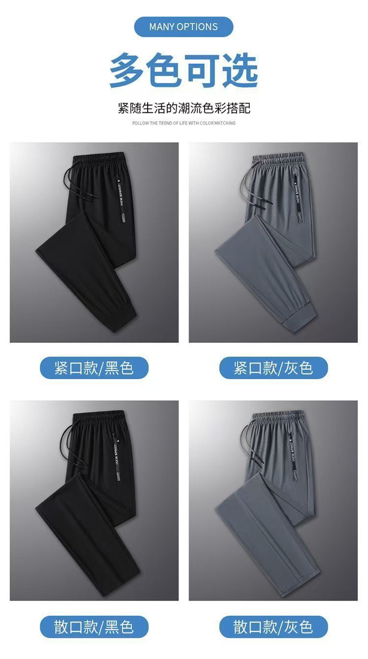 스트레치 아이스 실크 바지 남자 여름 얇은 빠른 건조 스포츠 바지 남자 느슨한 플러스 사이즈 캐주얼 바지 에어컨 바지스토어 가기