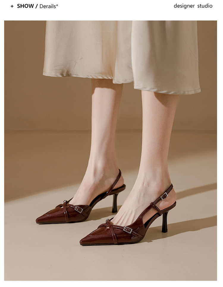 ZR 같은 스타일의 프랑스 하이힐 여성 스틸레토 힐 하이 엔드 크로스 레트로 뾰족한 여성 신발 편안한 부드러운 바닥 피곤하지 않은 발