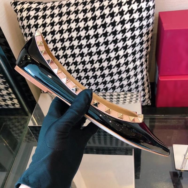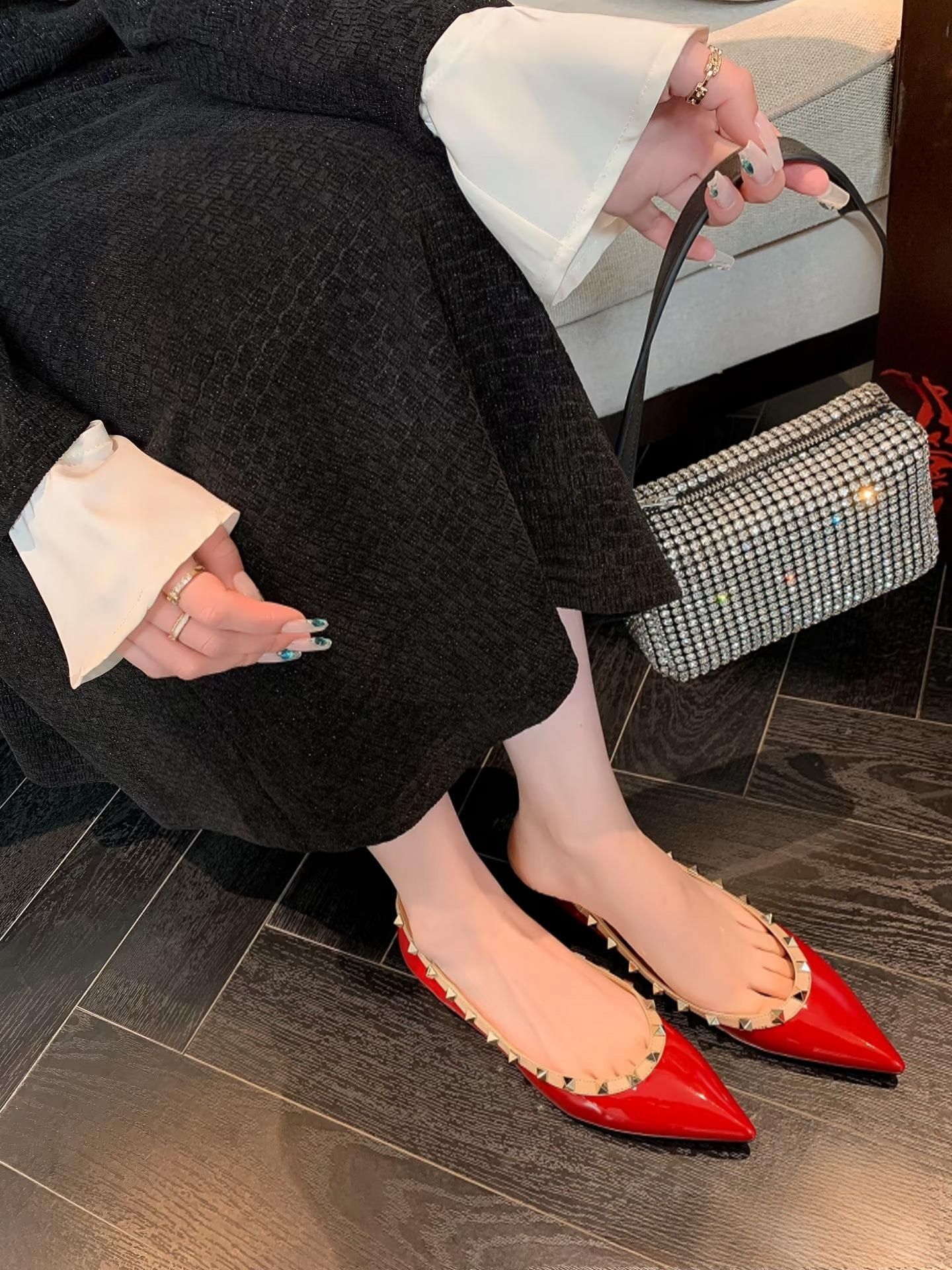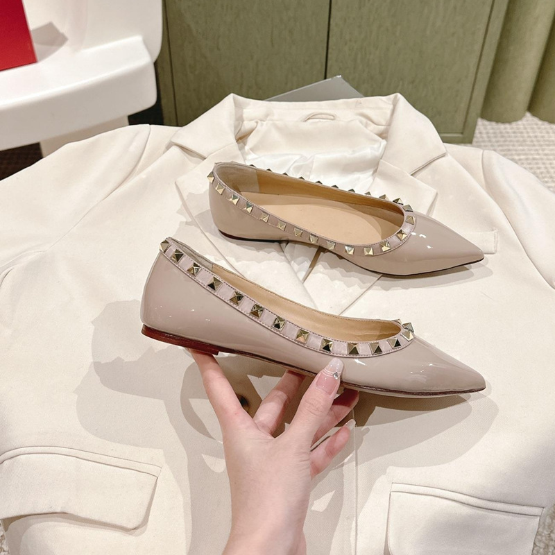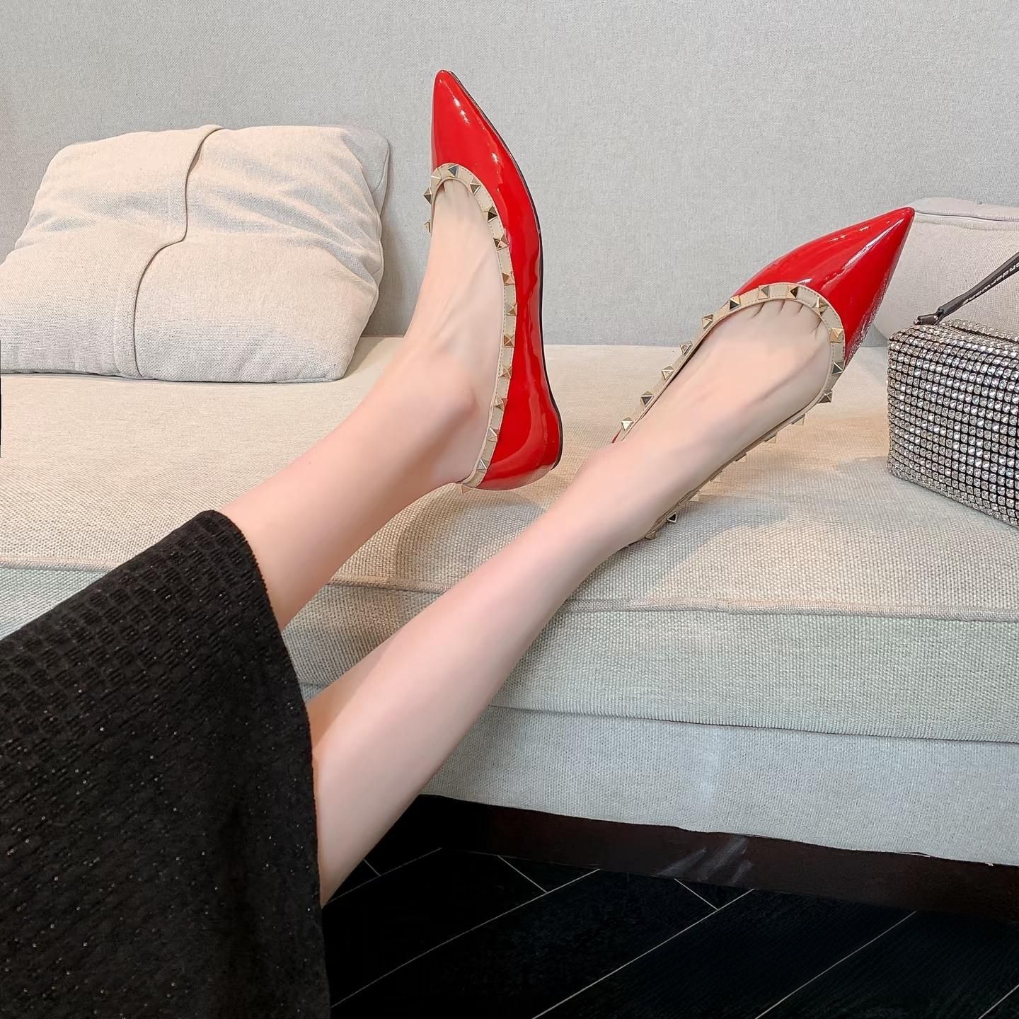 정품 V 스타일 리벳 플랫 슈즈 뉴 버들 스웨이드 포인팅 쇼로우 입 플랫 힐 보트 신발 여성용 유행 싱글 슈즈스토어 가기