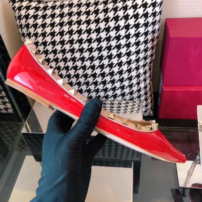 정품 V 스타일 리벳 플랫 슈즈 뉴 버들 스웨이드 포인팅 쇼로우 입 플랫 힐 보트 신발 여성용 유행 싱글 슈즈