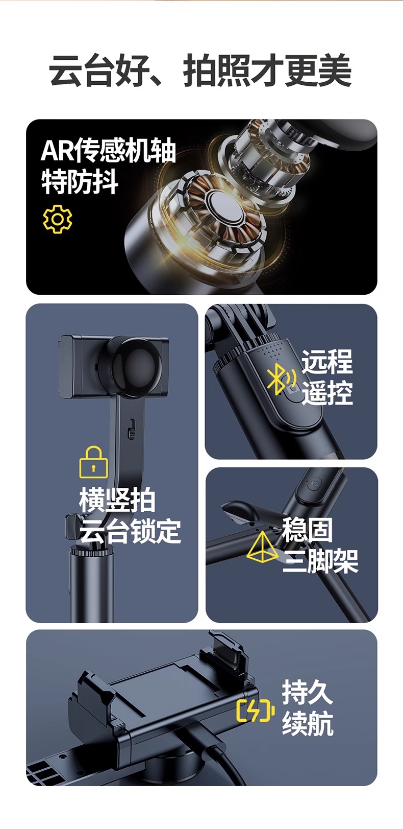 휴대용 짐벌 안정제 휴대 전화 셀카 스틱 안티 쉐이크 접이식 삼각대 카메라 스탠드 블루투스 셀카 유물