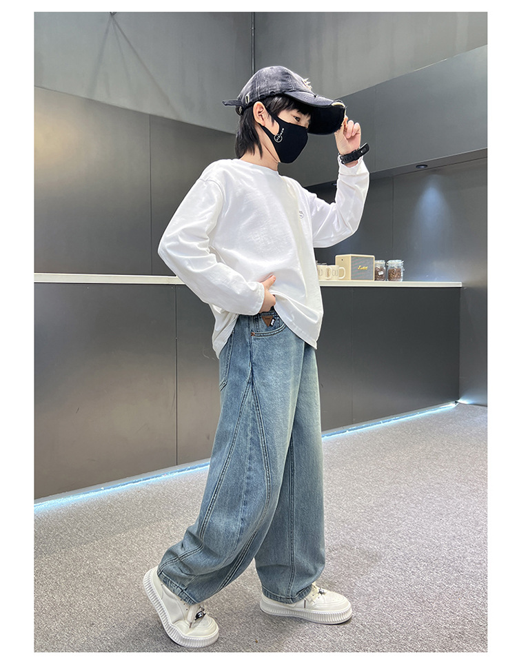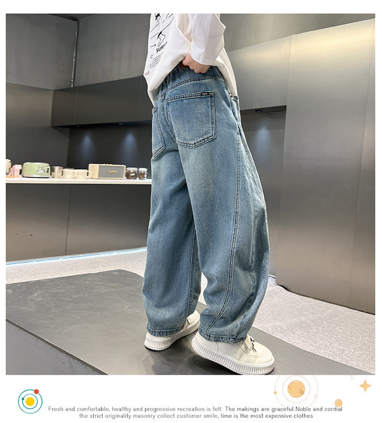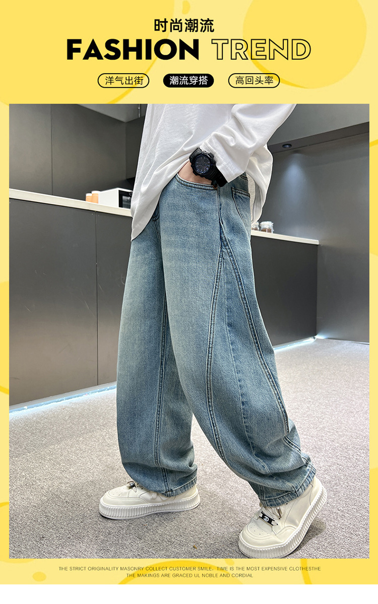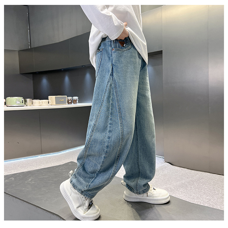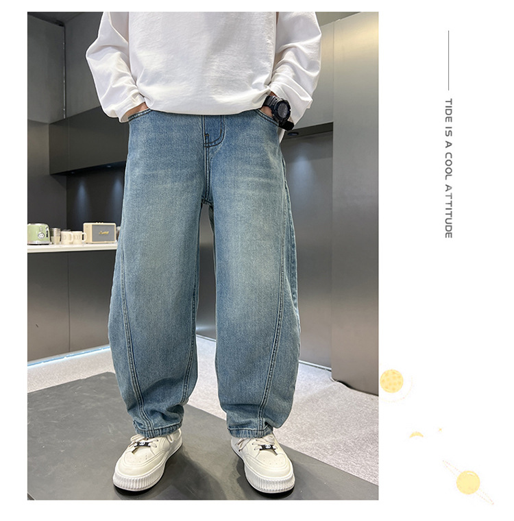 남아 청바지 봄, 가을 루즈 2025 중대형 아동 캐주얼 한국식 바지 서양식 아동 스트레이트 팬츠 봄, 여름스토어 가기