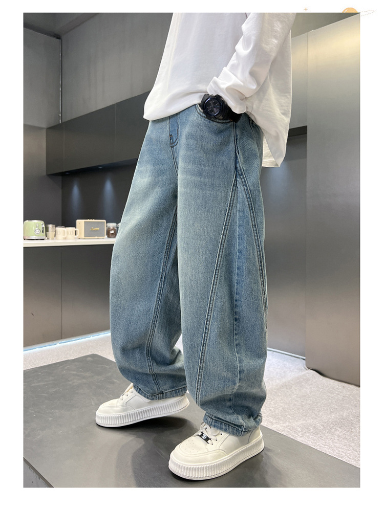 남아 청바지 봄, 가을 루즈 2025 중대형 아동 캐주얼 한국식 바지 서양식 아동 스트레이트 팬츠 봄, 여름