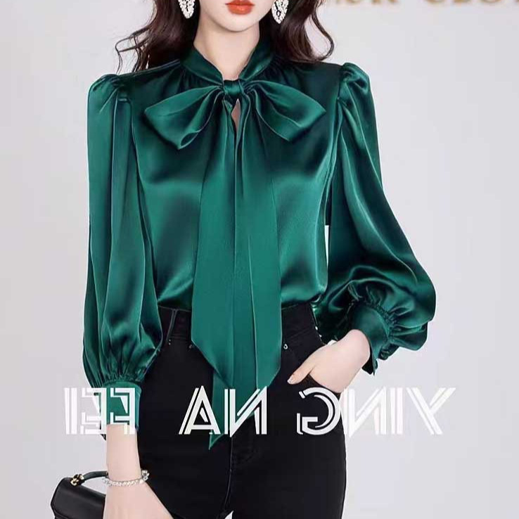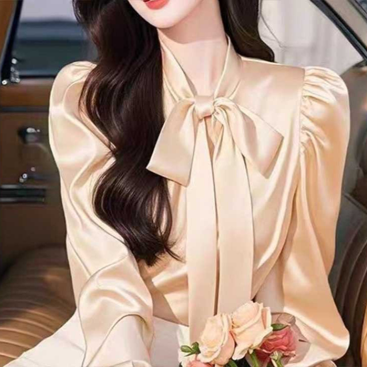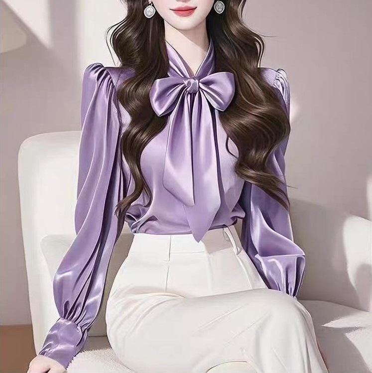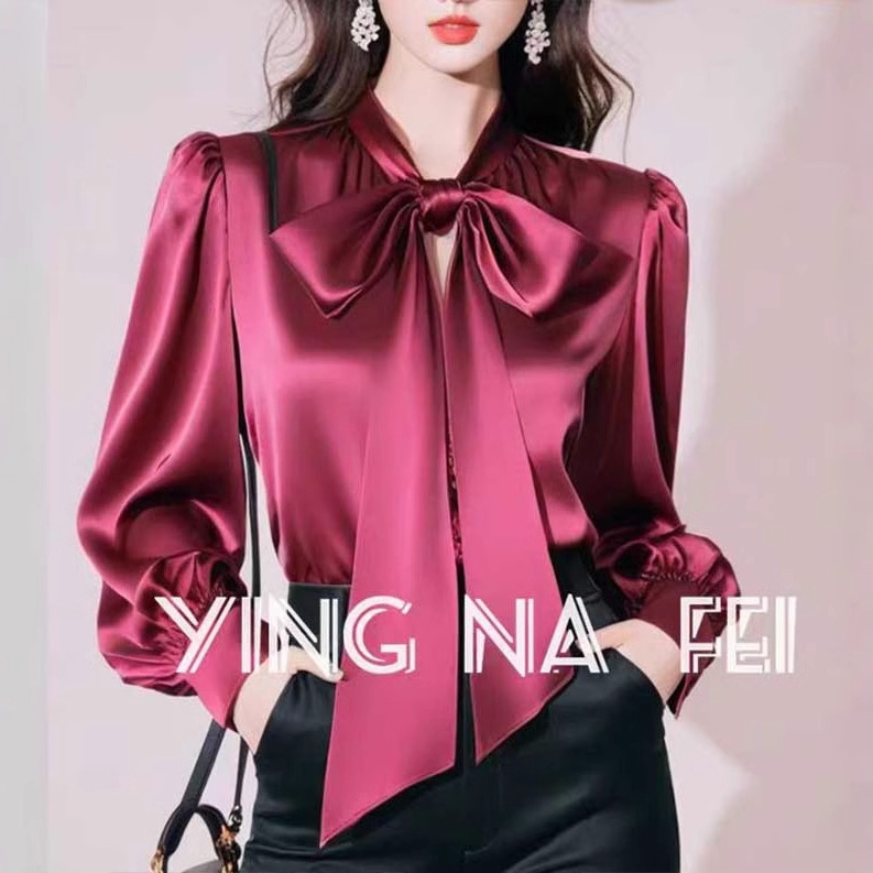 실크 여성의 긴팔 셔츠 여성의 봄과 가을 프랑스 하이 엔드 기질 탑 디자인 틈새 하이 엔드 셔츠