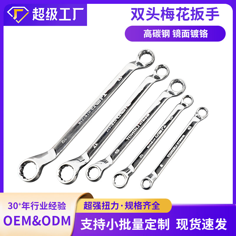 同力镜面双头梅花扳手汽修维修呆扳手工具镀铬抛光手动开口扳手