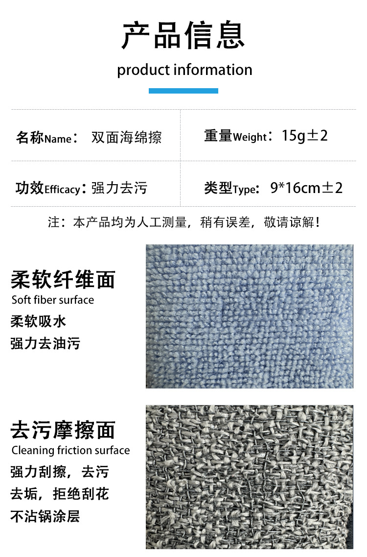 양면 세척용 극세사로 진공 포장 가능한 스펀지 블록, 기름에 잘 달라붙지 않는 행주, 행주