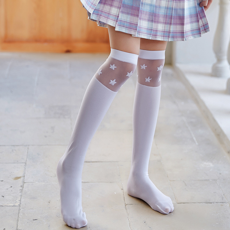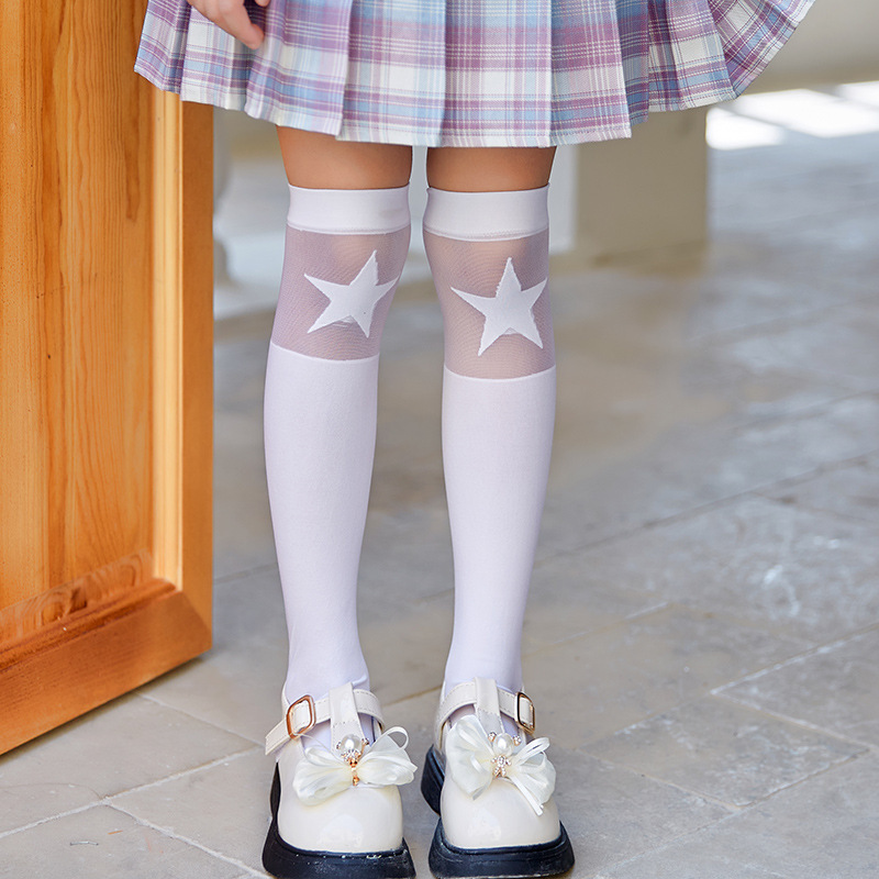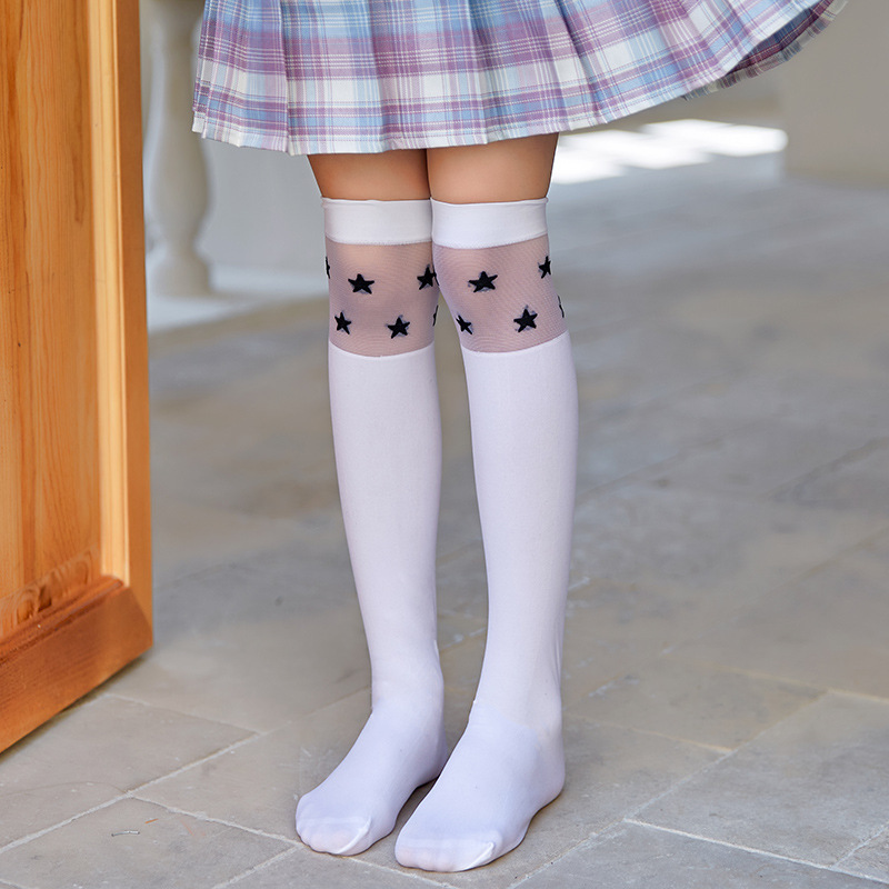 여아 종아리 양말, 여름 얇은 만화 양말, 긴 양말, 흰색 반 양말, 봄과 가을 어린이 종아리 양말