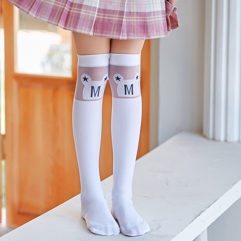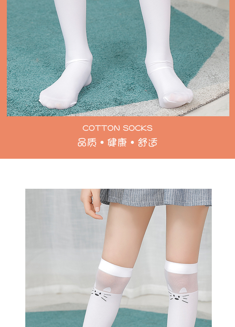 여아 종아리 양말, 여름 얇은 만화 양말, 긴 양말, 흰색 반 양말, 봄과 가을 어린이 종아리 양말스토어 가기