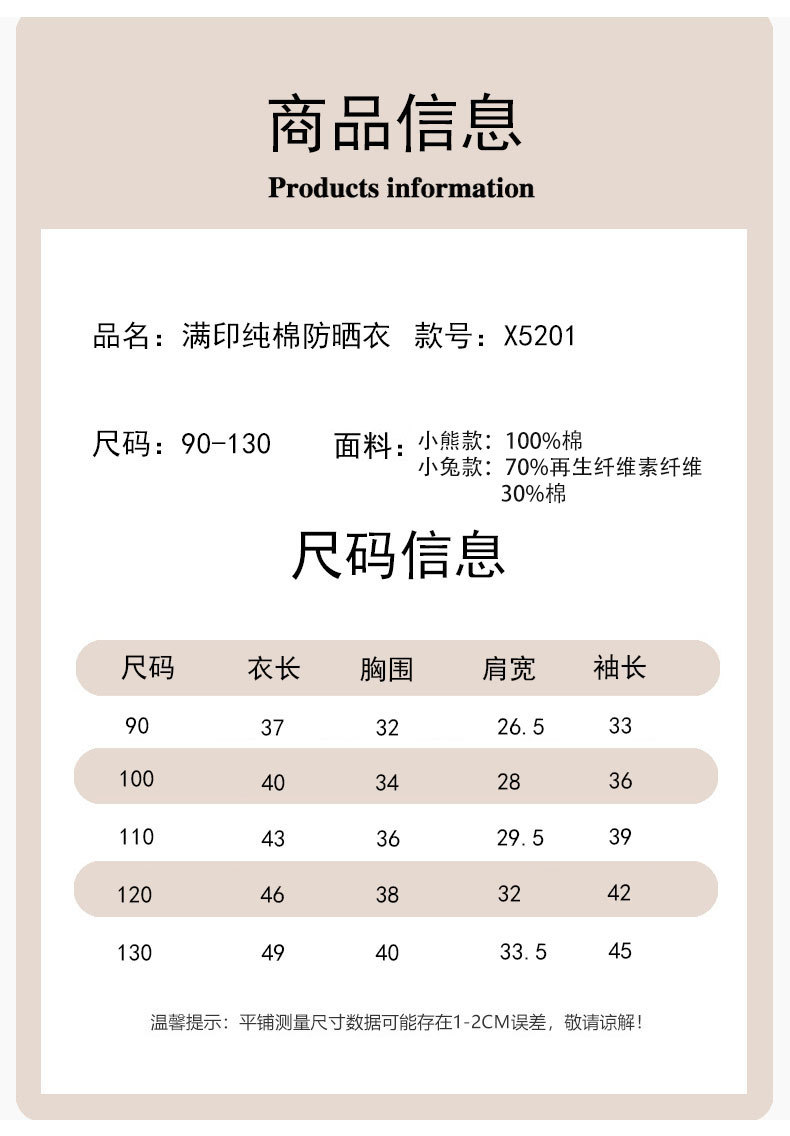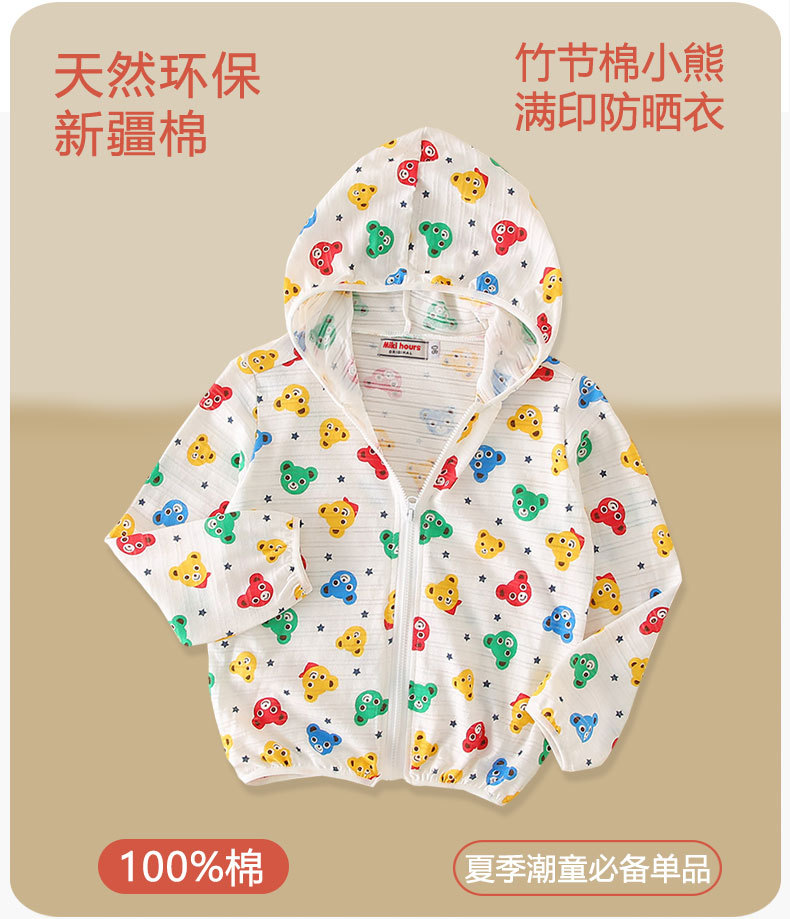 mikihours 아동용 코트 순면 올오버 프린트 자외선 차단 의류 남녀공용 여름 지퍼 탑 만화 패턴