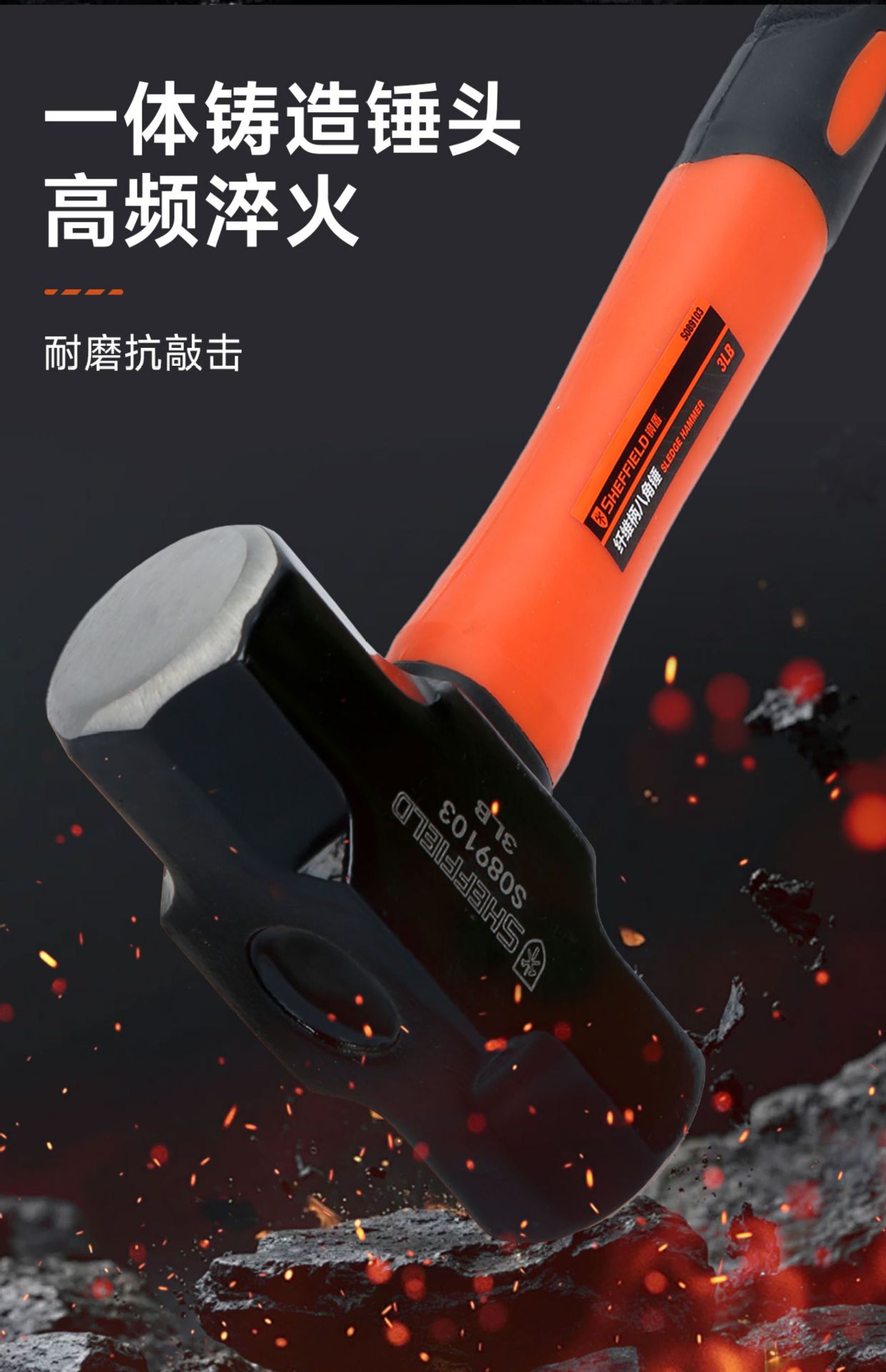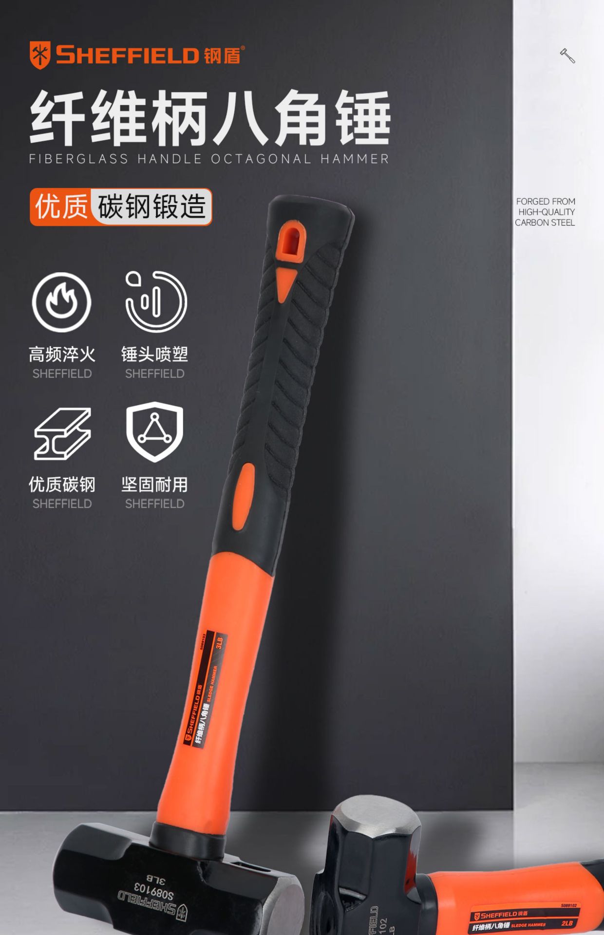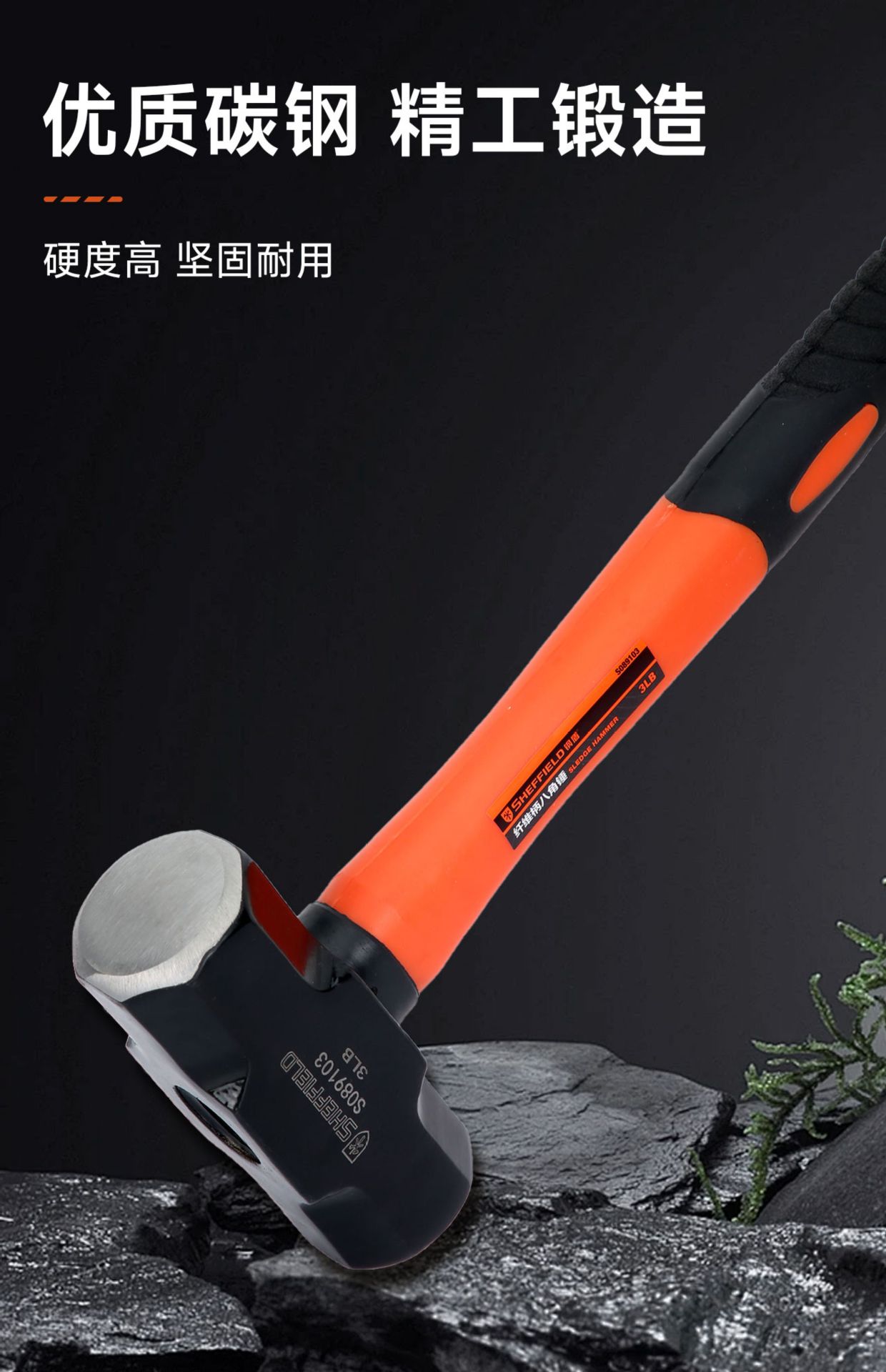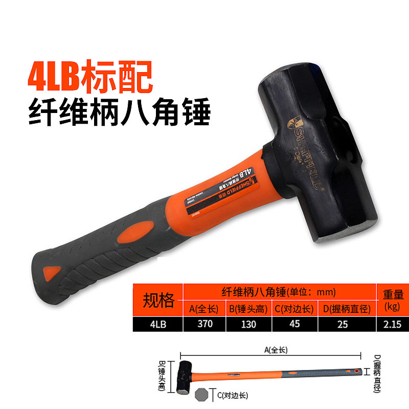 강철 방패 섬유 손잡이 중형 고탄소강 팔각형 망치 벽 파괴 도구 사각형 철 망치 석공용 망치 엔지니어링 등급