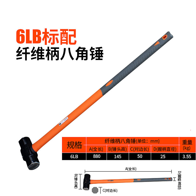 • 섬유 손잡이 팔각형 해머 6LB