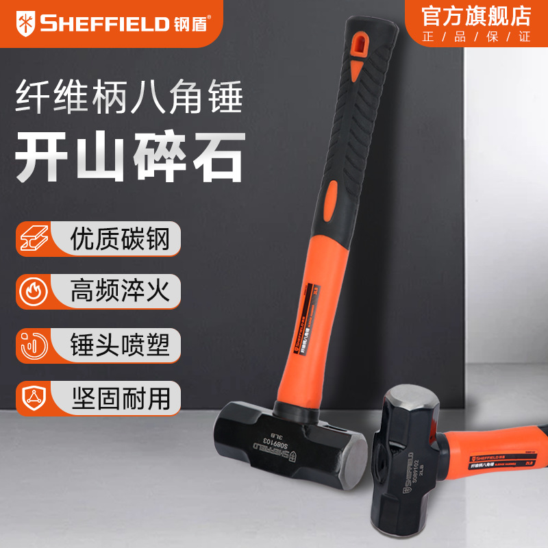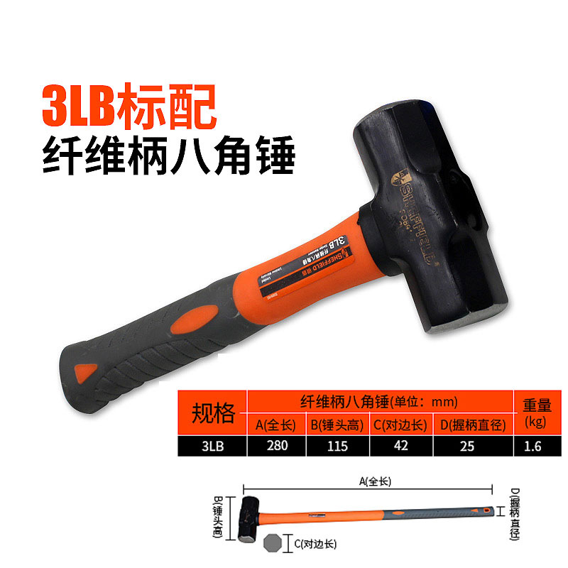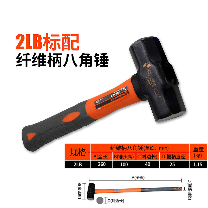 강철 방패 섬유 손잡이 중형 고탄소강 팔각형 망치 벽 파괴 도구 사각형 철 망치 석공용 망치 엔지니어링 등급스토어 가기