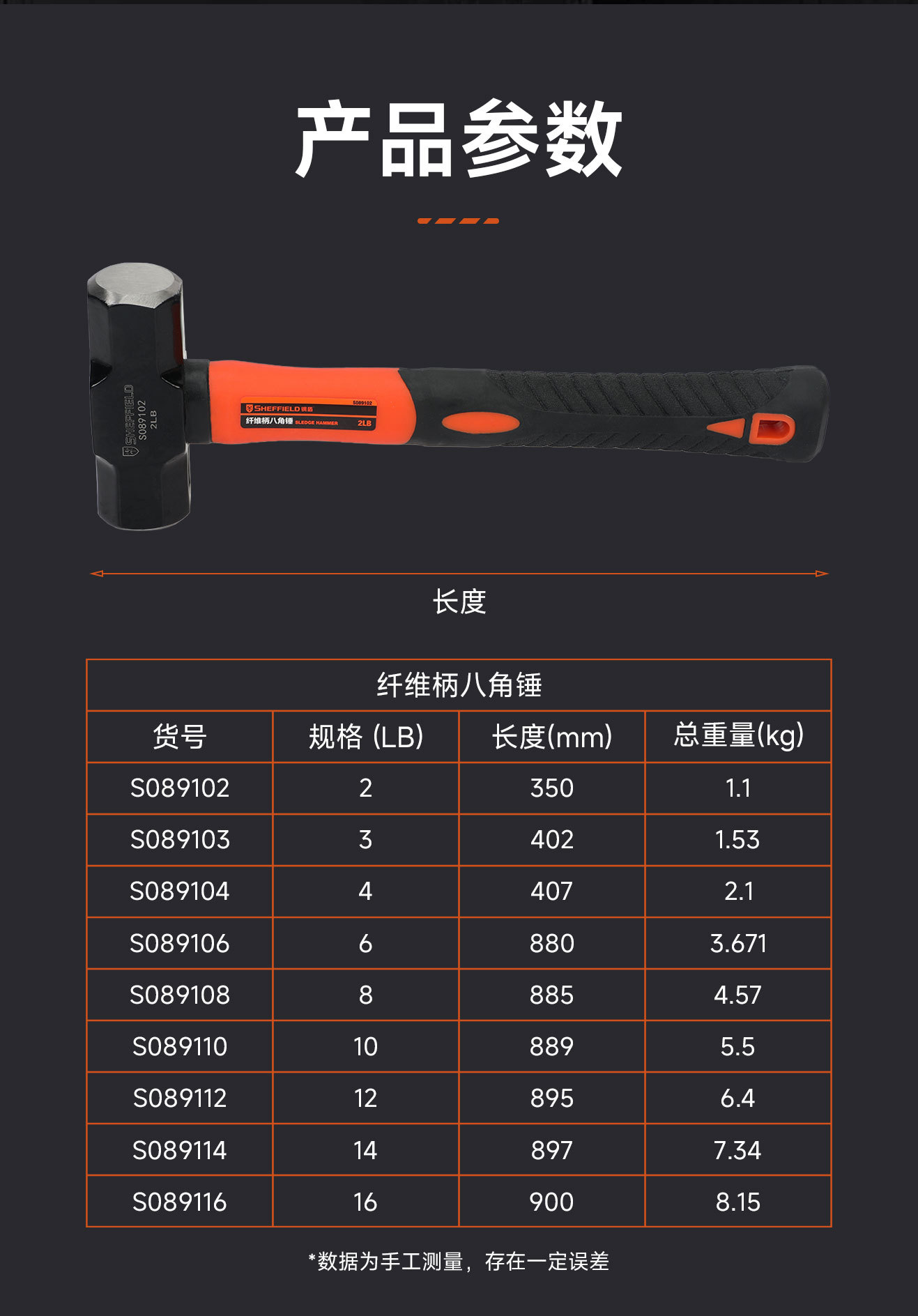 • 섬유 손잡이 팔각형 해머 16LB