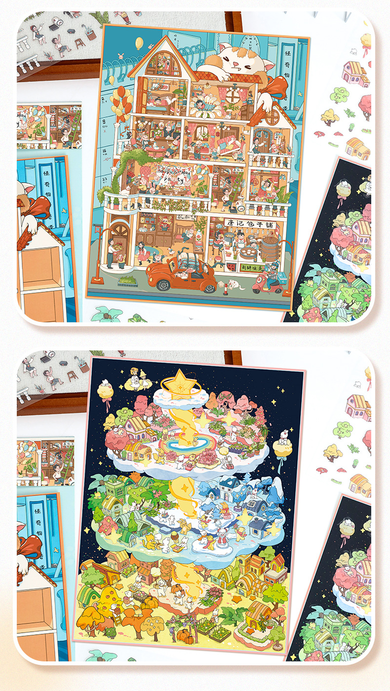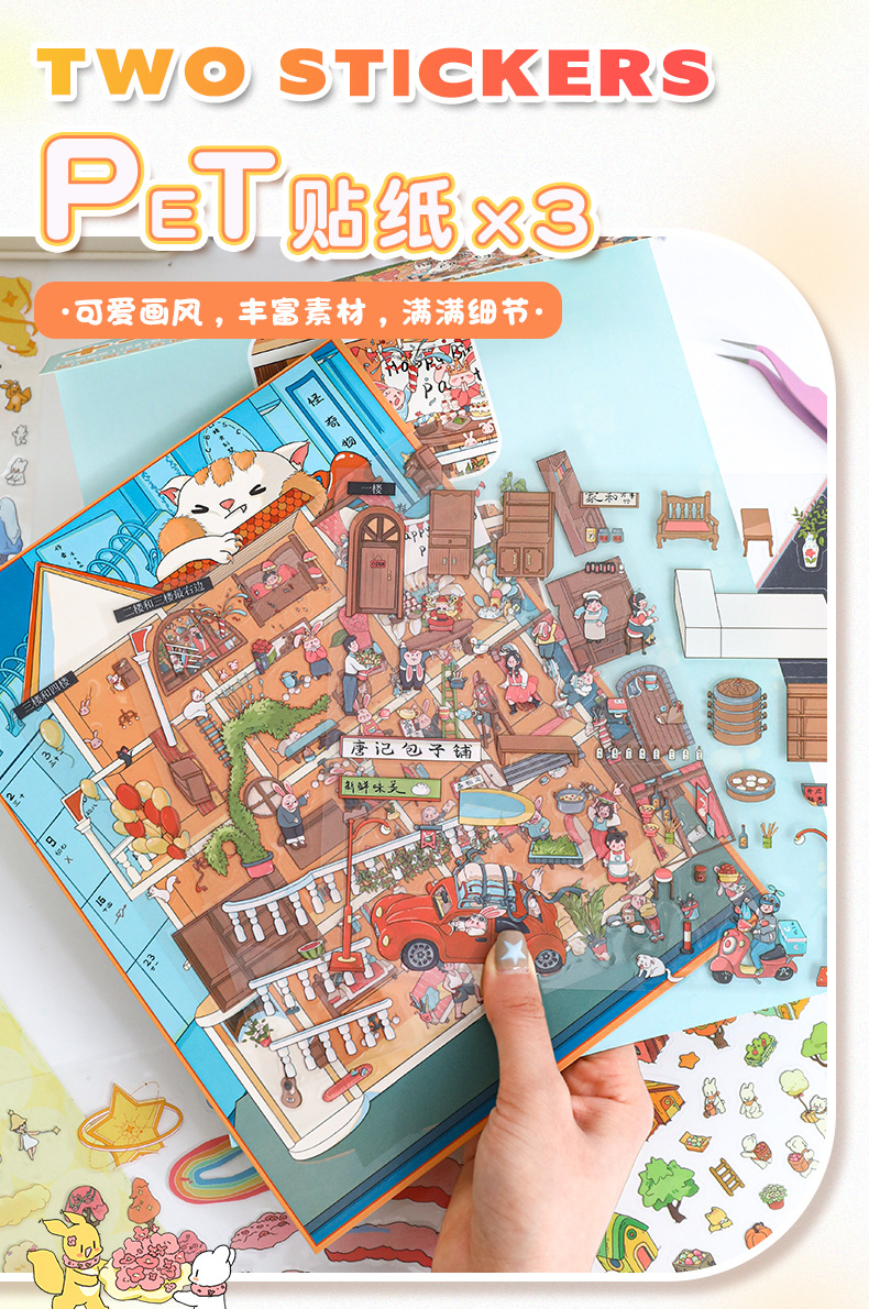 37.0 아트 블루 조경 스티커 귀여운 대형 3D 3 차원 미니어처 장면 콜라주 DIY 핸드 계정 감압 장난감스토어 가기