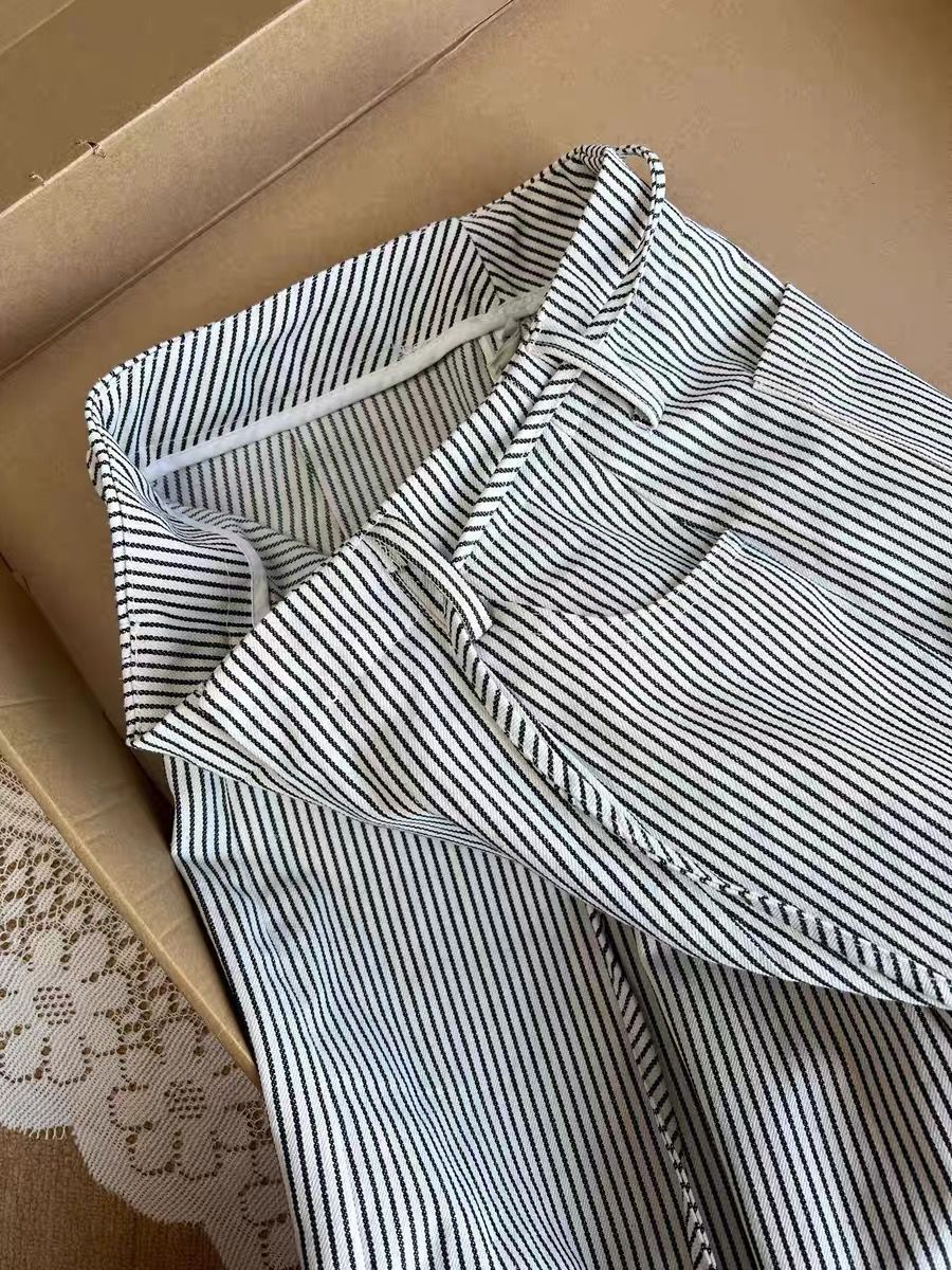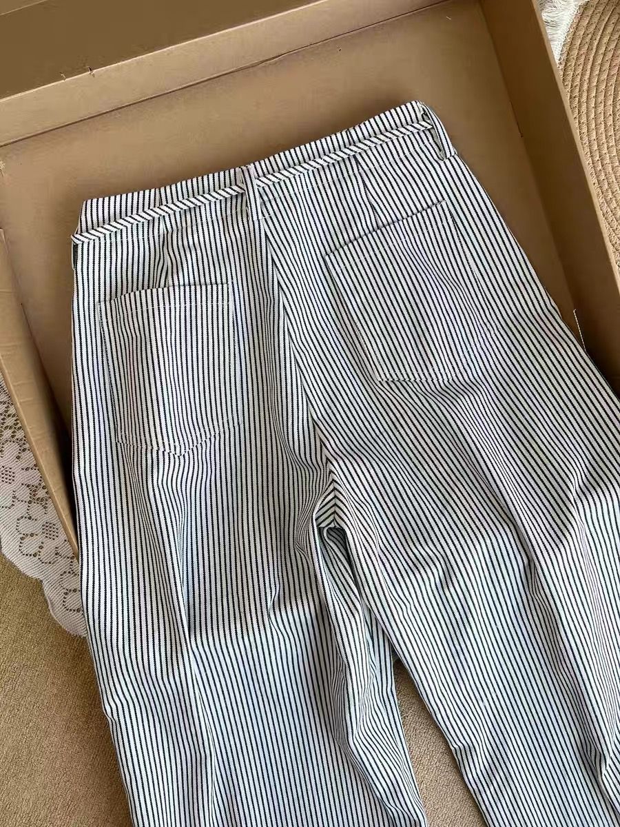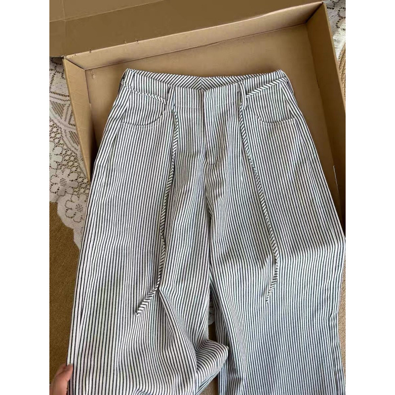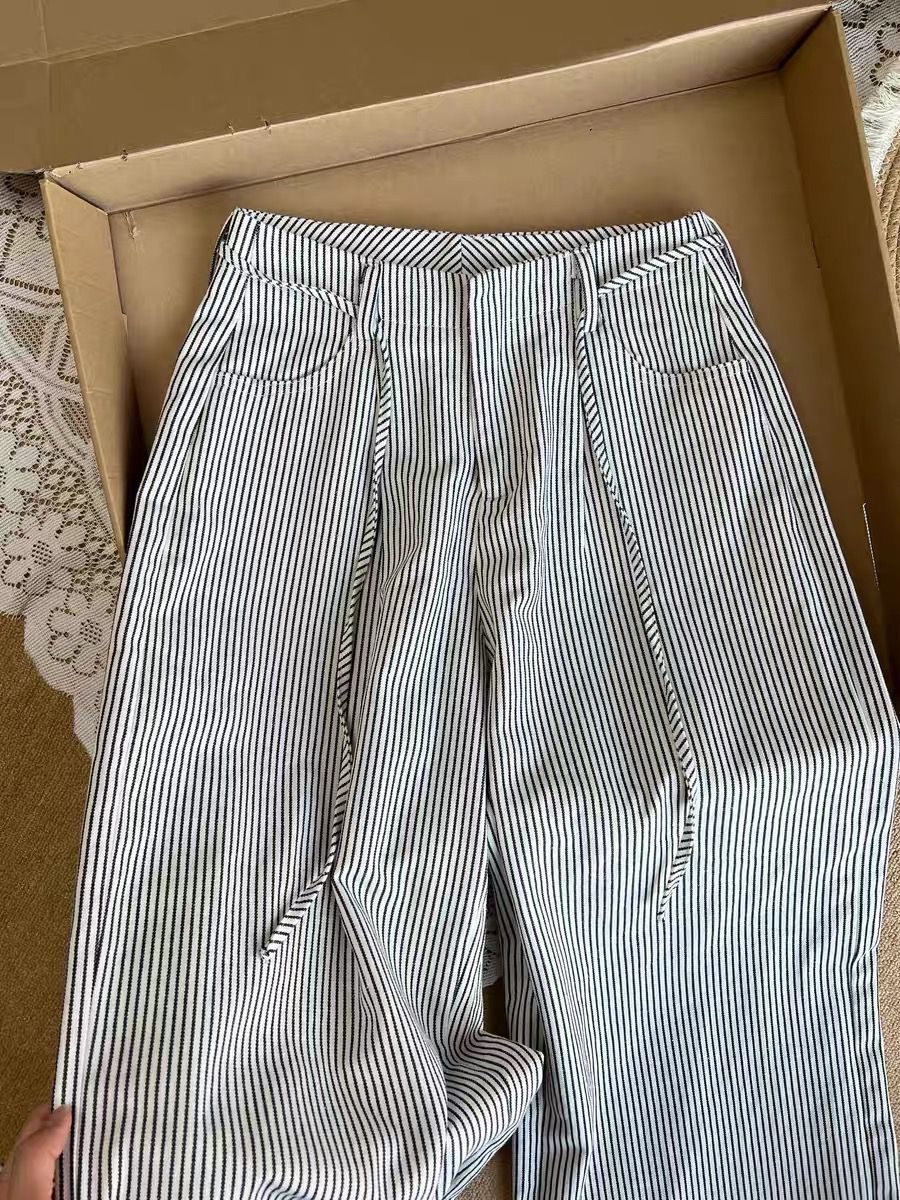 편안하고 아름다운! 디자인 센스 스트라이프 스트레이트 캐주얼 바지 여성의 여름 느슨한 얇은 높은 허리 유행 바지스토어 가기