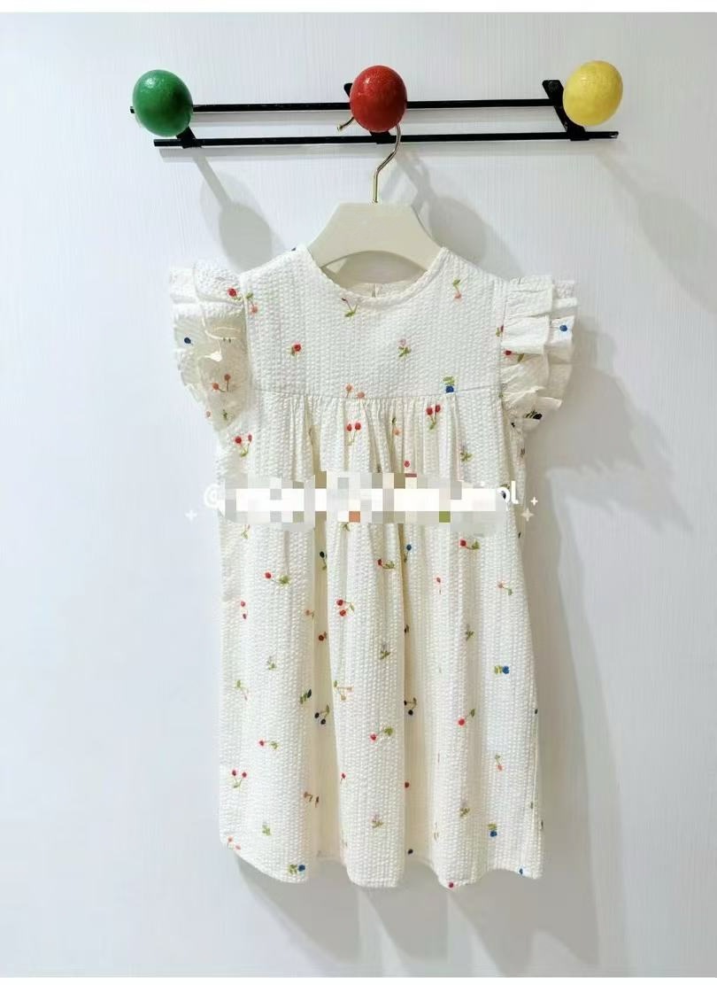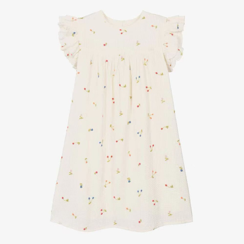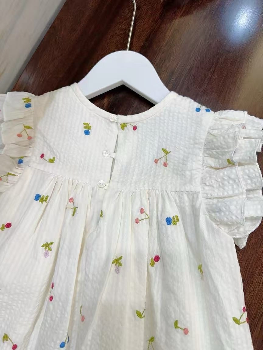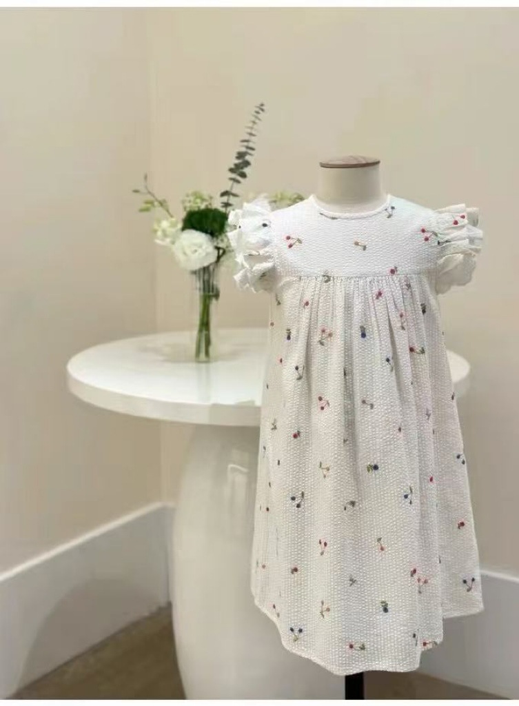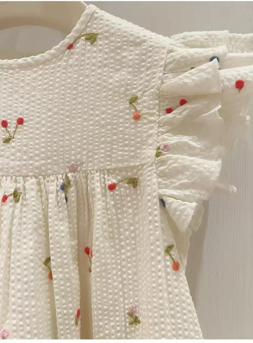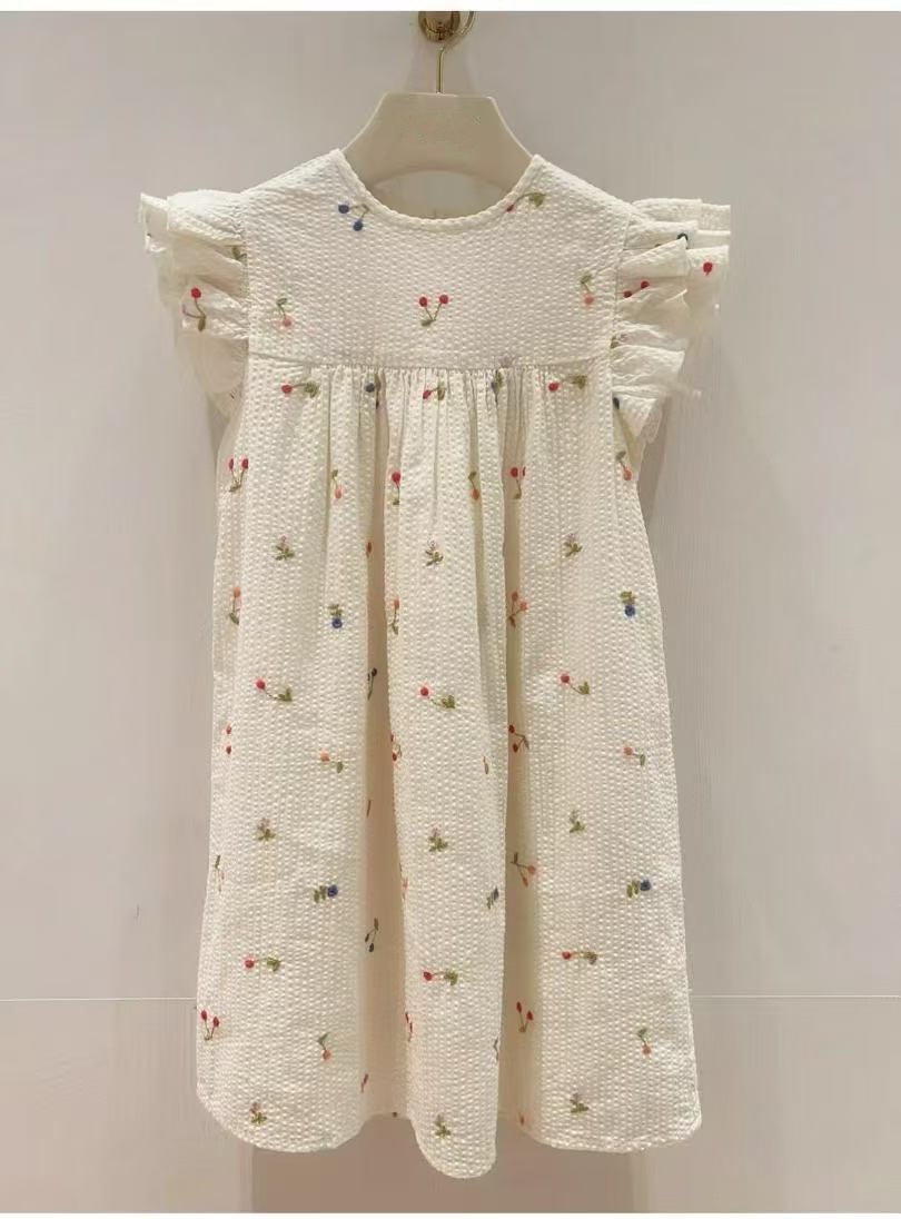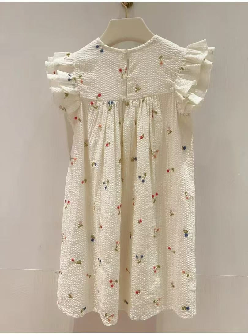 프랑스 싱글 소녀의 새로운 원피스 마카롱 컬러 버블 컬러 체리 자수 작은 비행 슬리브 스커트스토어 가기