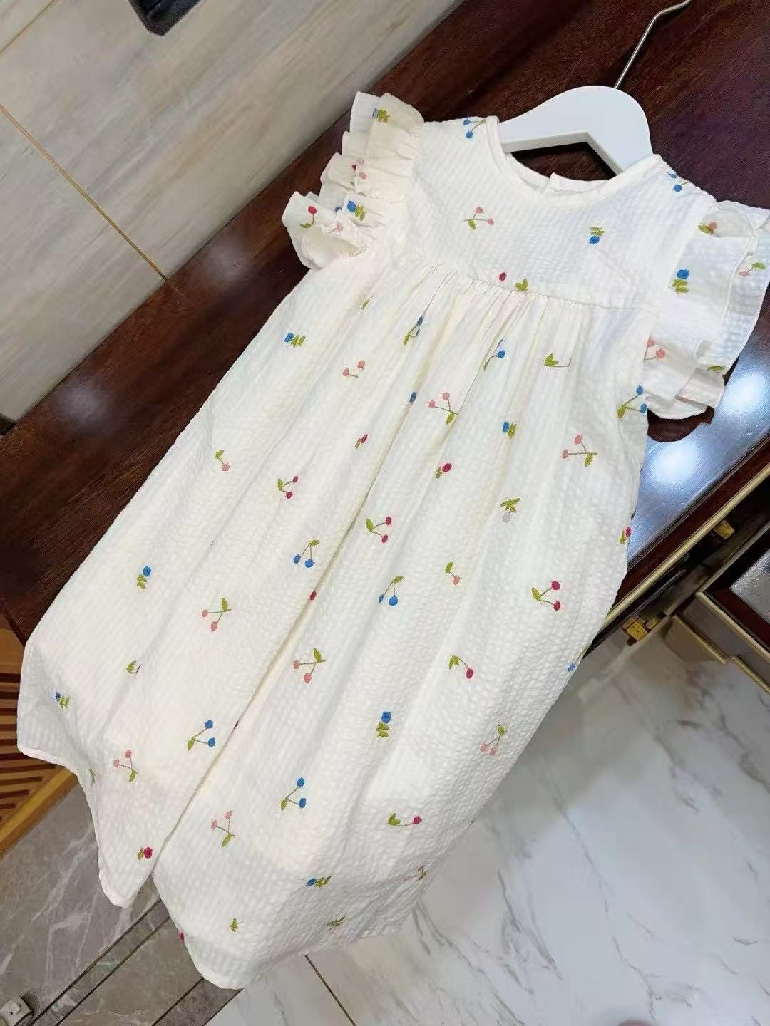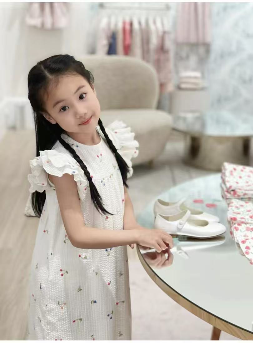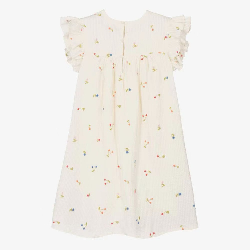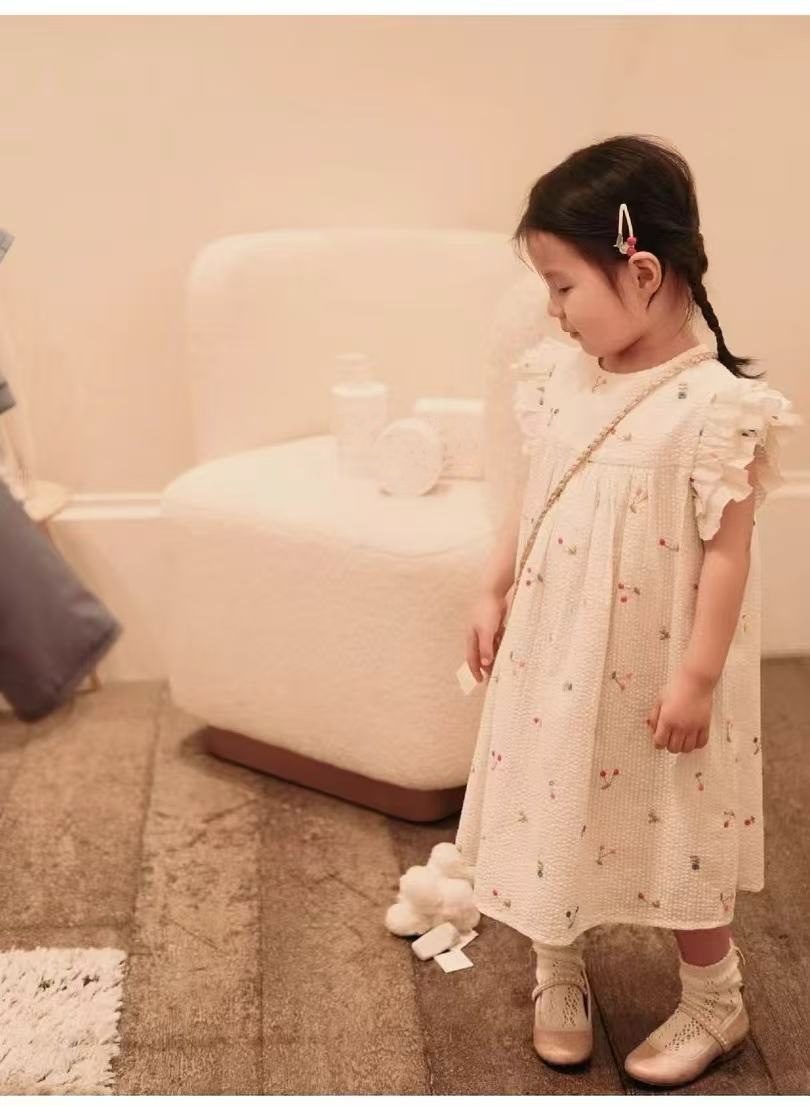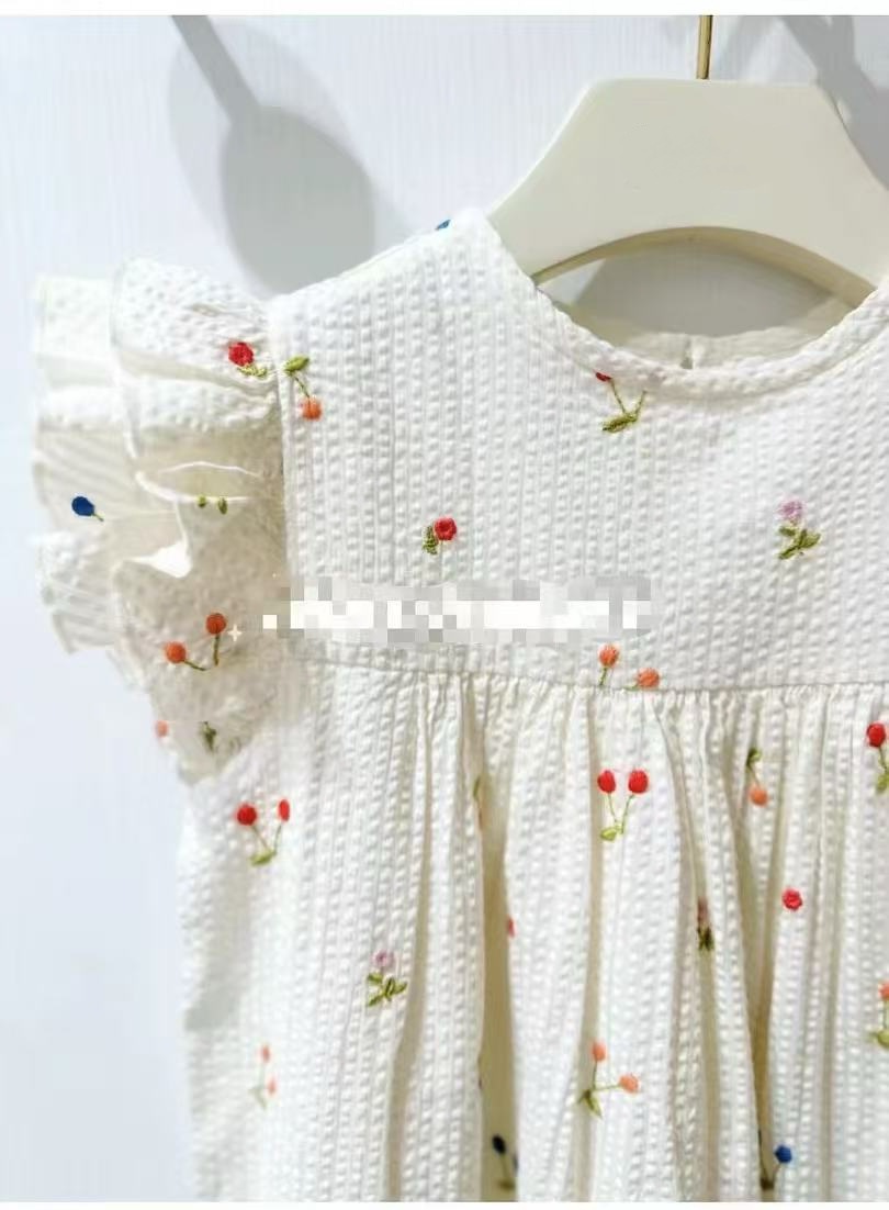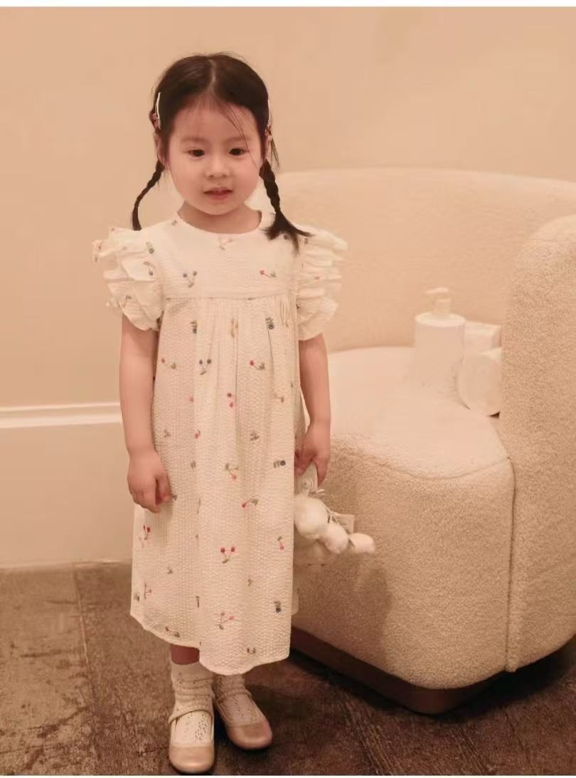 프랑스 싱글 소녀의 새로운 원피스 마카롱 컬러 버블 컬러 체리 자수 작은 비행 슬리브 스커트스토어 가기