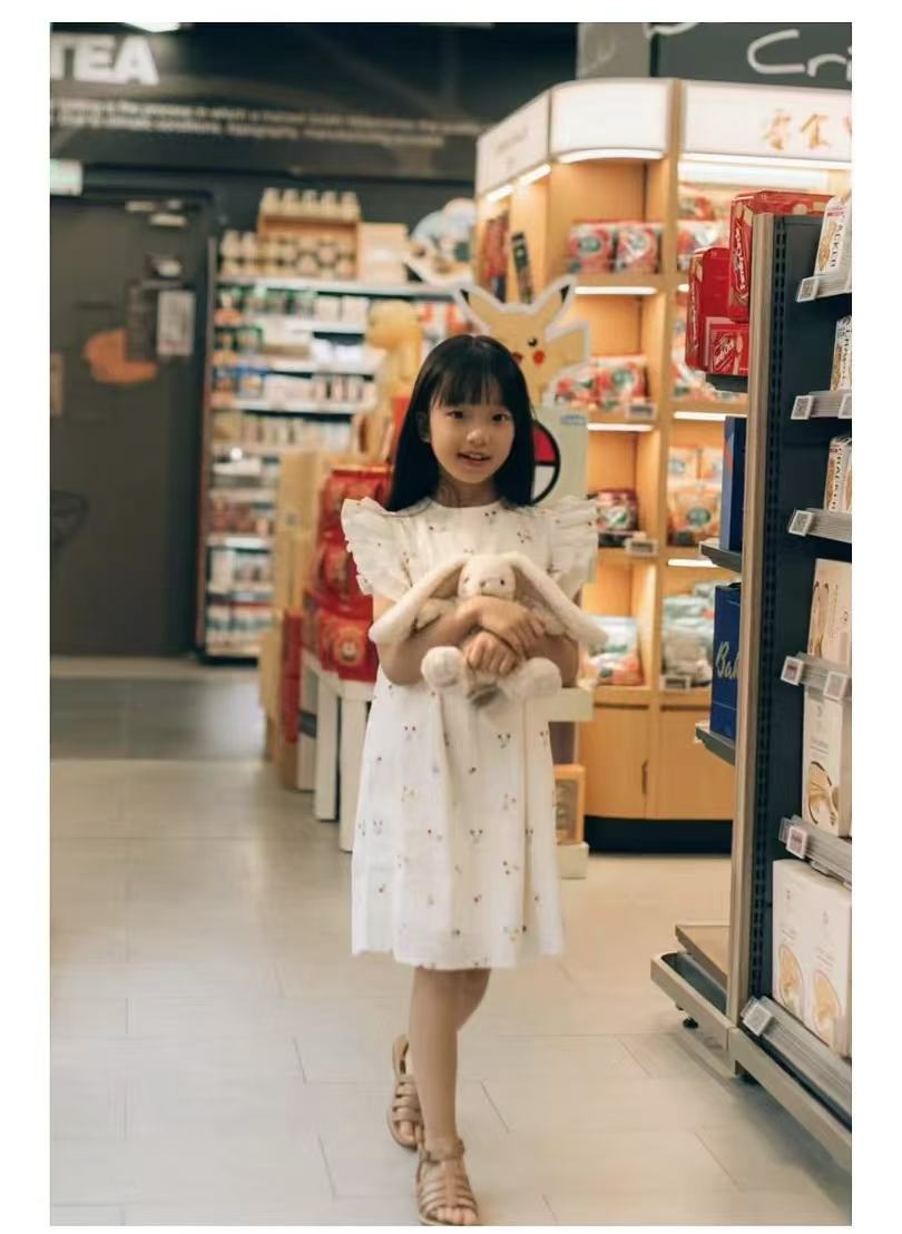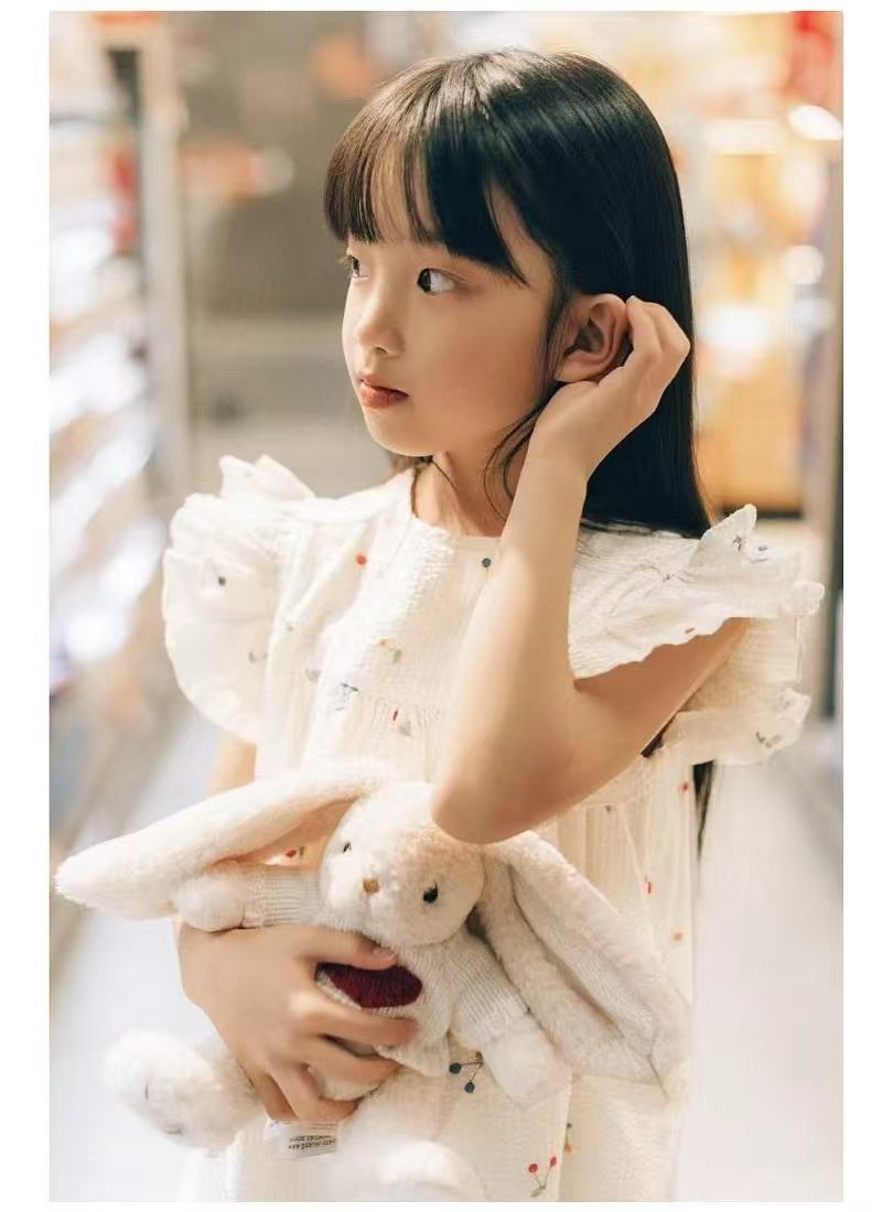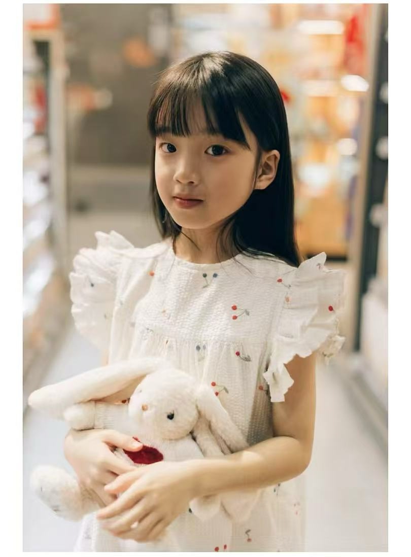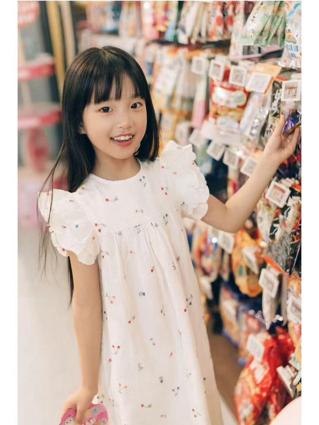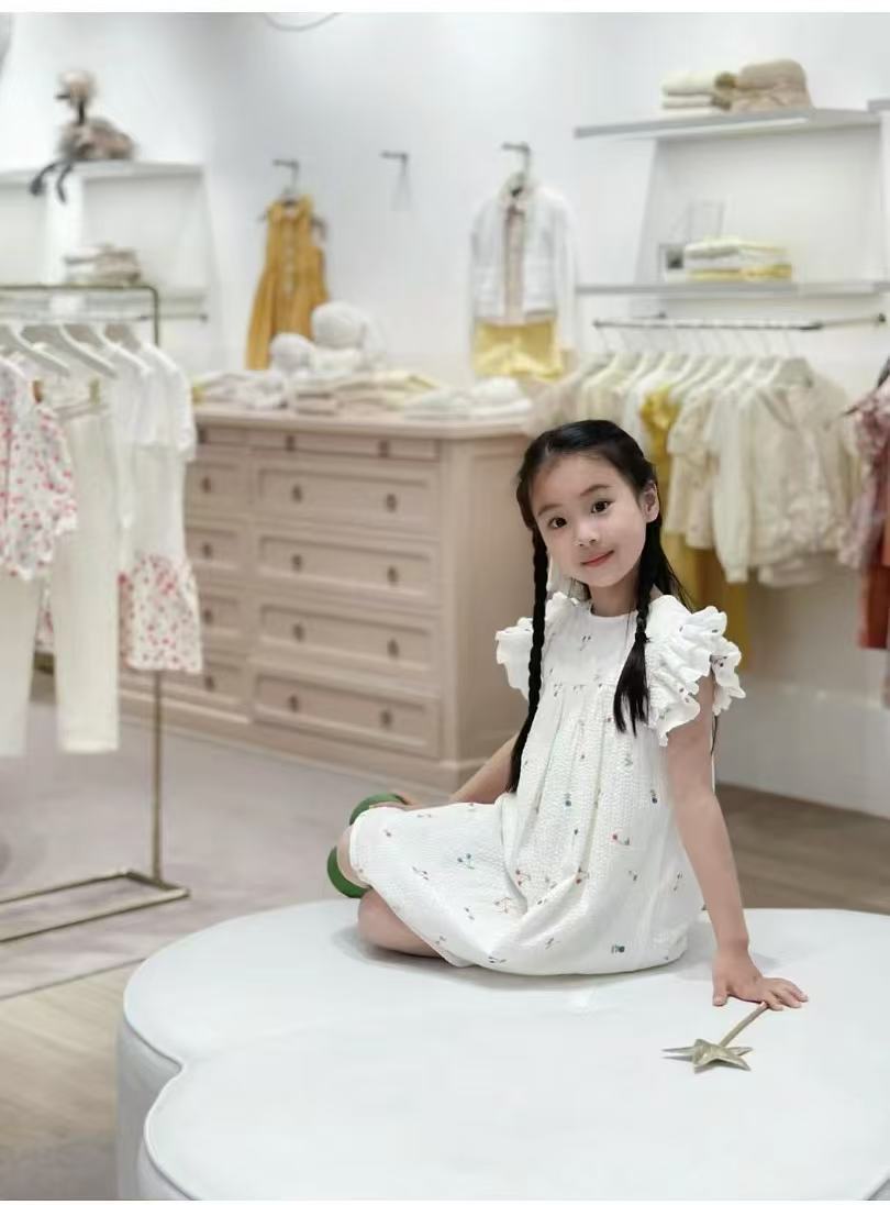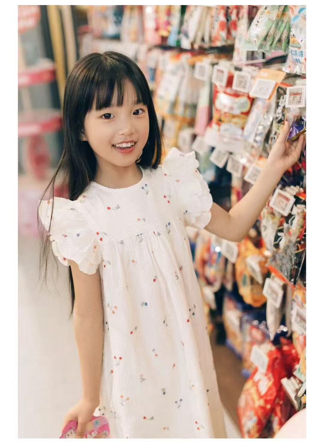 프랑스 싱글 소녀의 새로운 원피스 마카롱 컬러 버블 컬러 체리 자수 작은 비행 슬리브 스커트스토어 가기