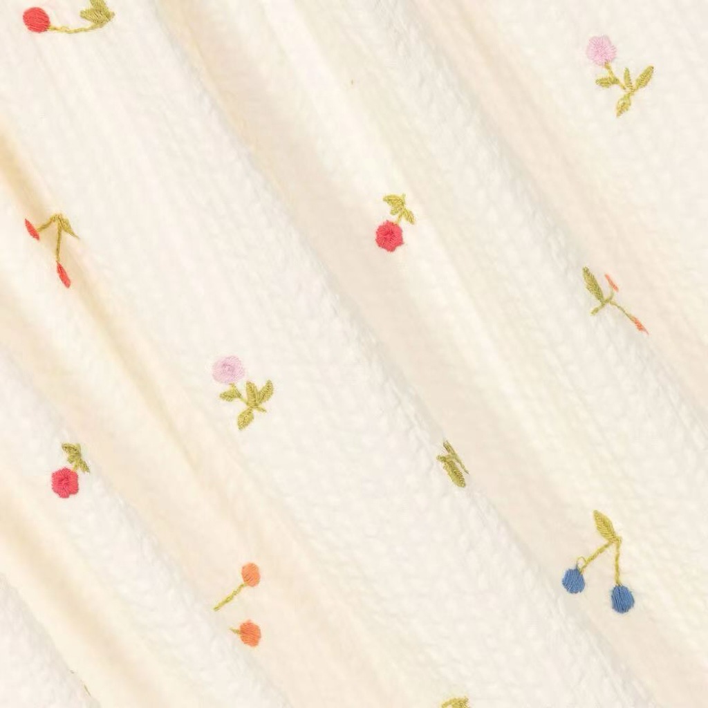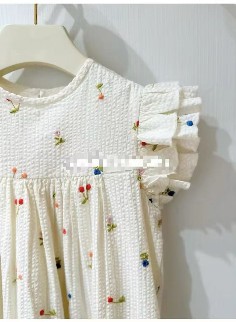 프랑스 싱글 소녀의 새로운 원피스 마카롱 컬러 버블 컬러 체리 자수 작은 비행 슬리브 스커트
