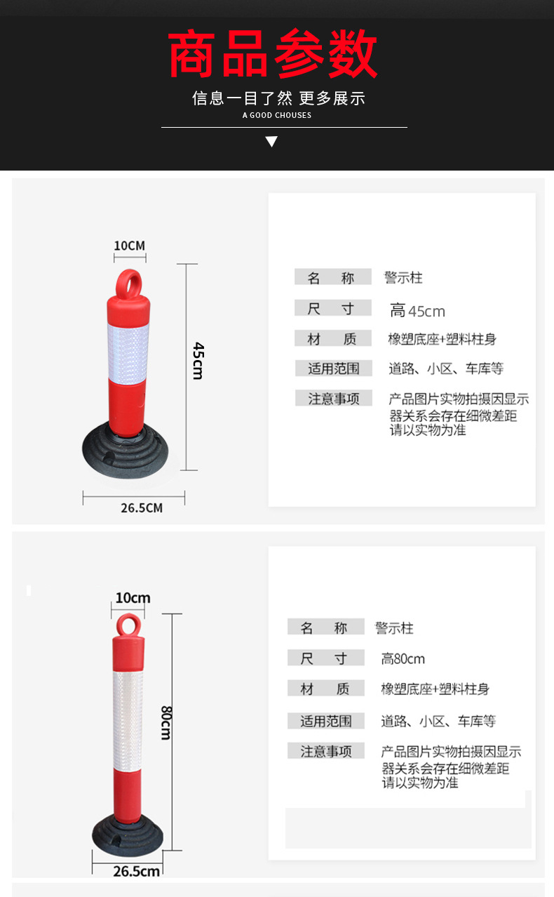 틸트 컬럼 경고 기둥 탄성 기둥 고무 바닥 빨간색과 흰색 경고 기둥 분할형 분리형 플라스틱 기둥스토어 가기