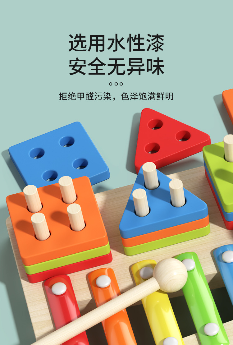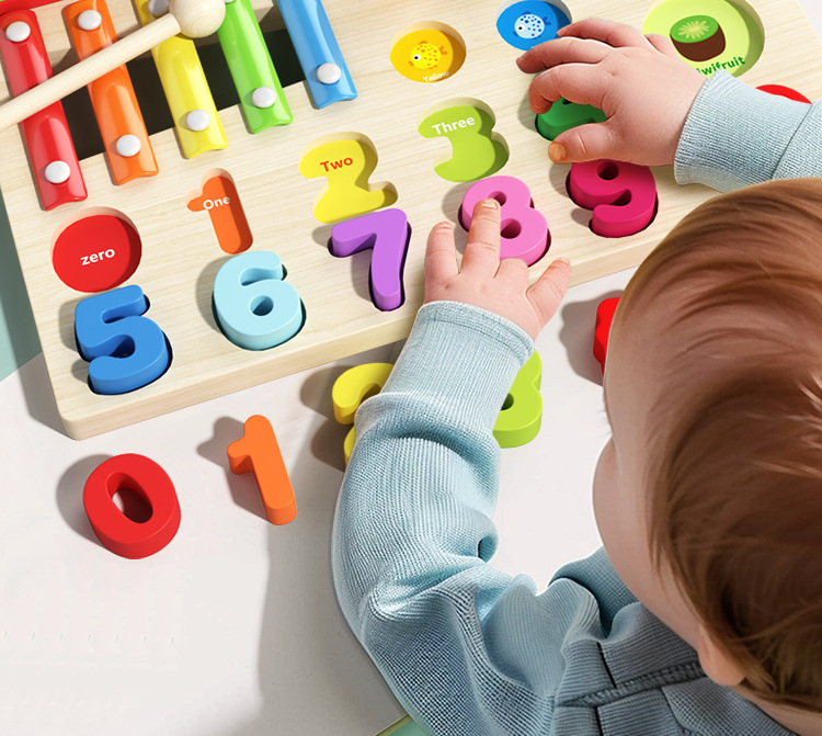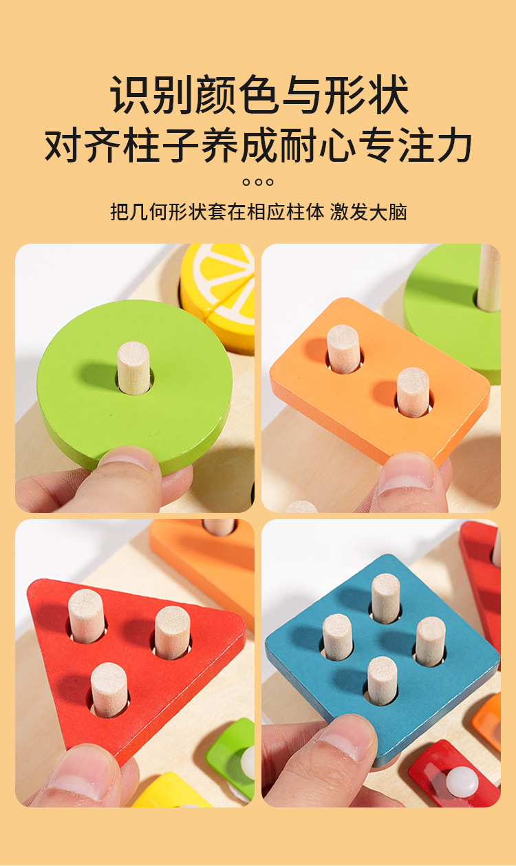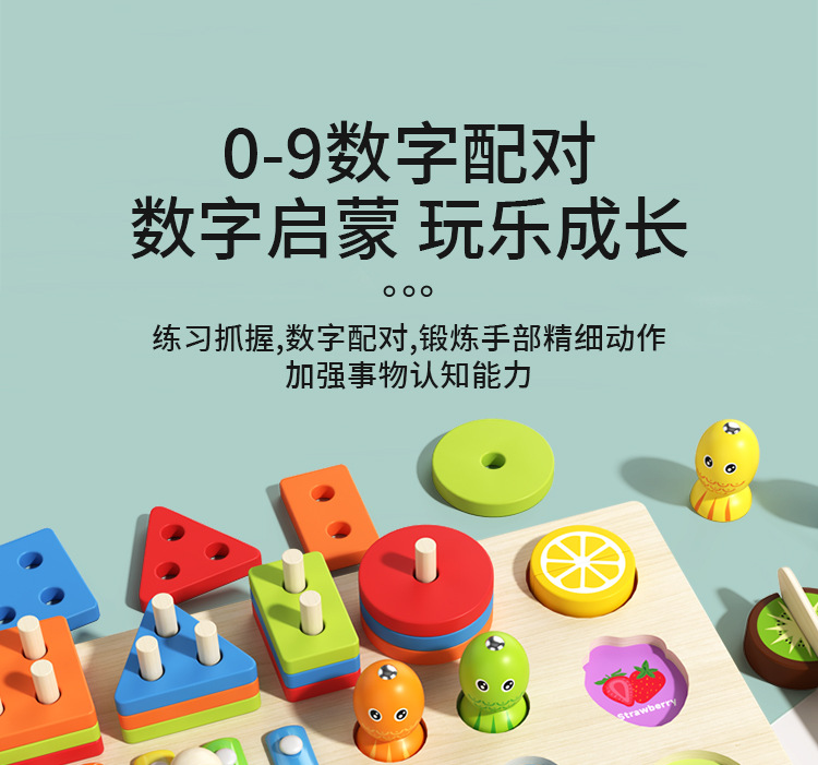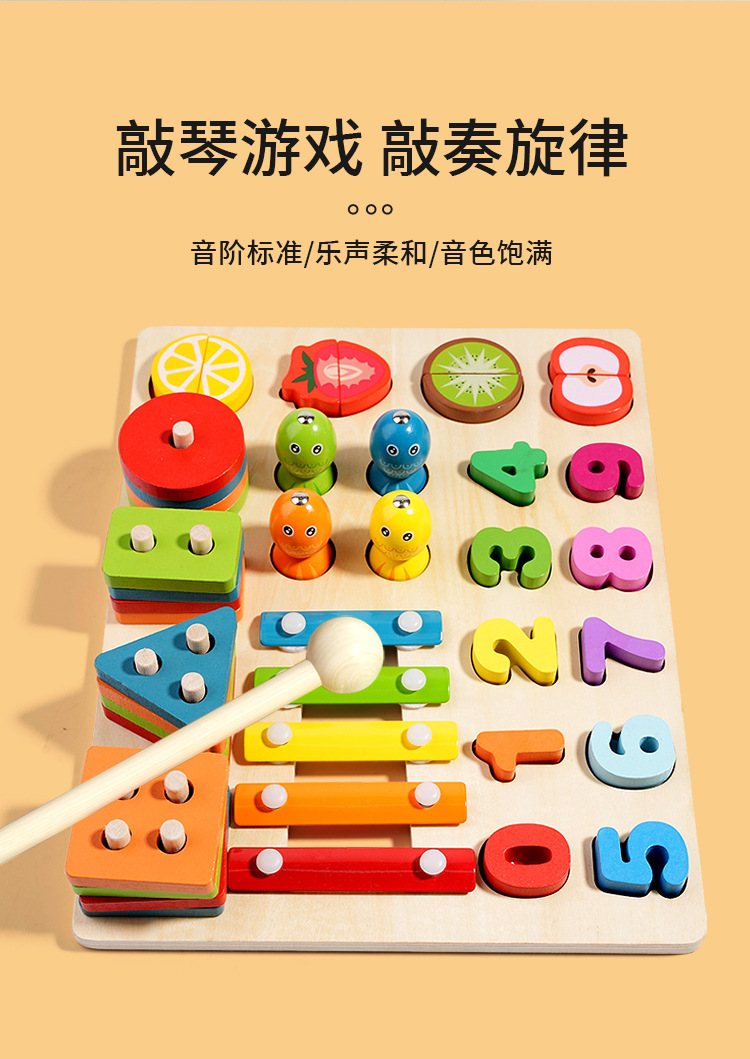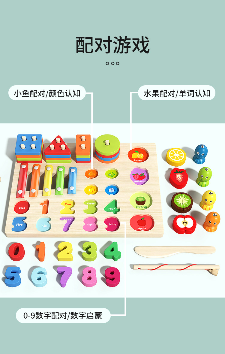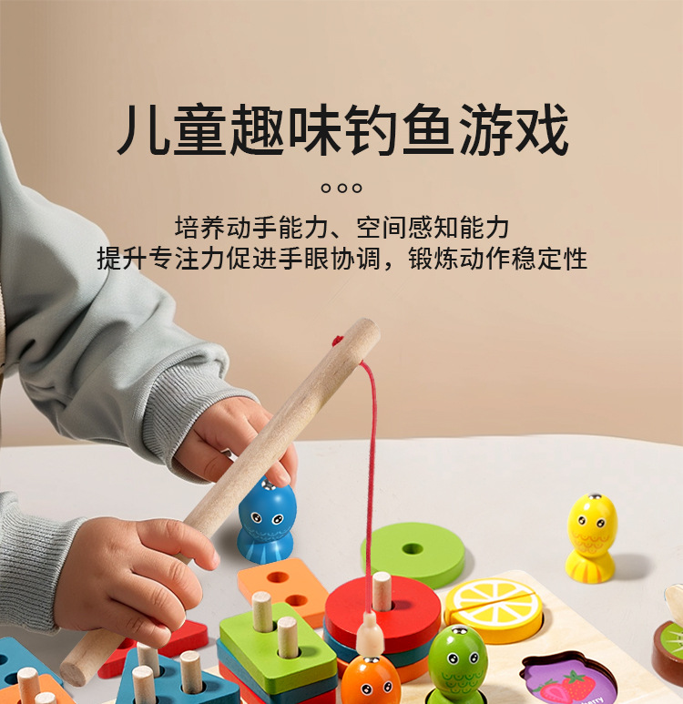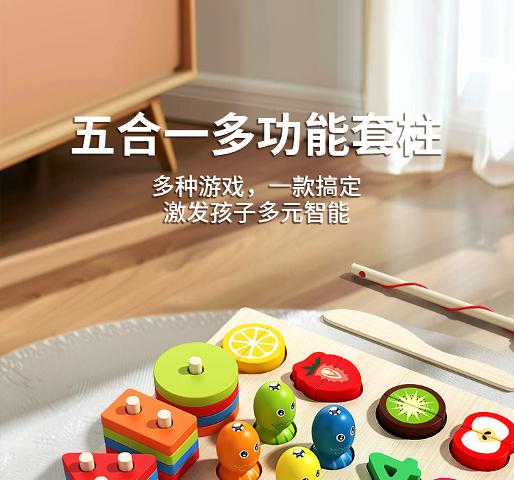 어린이 나무 장난감 낚시 세트 기둥 노크 디지털 퍼즐 5 대 1 모양 컬러 인지 절단 과일 장난감스토어 가기