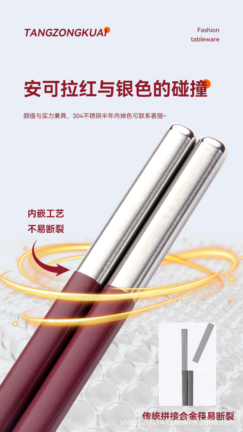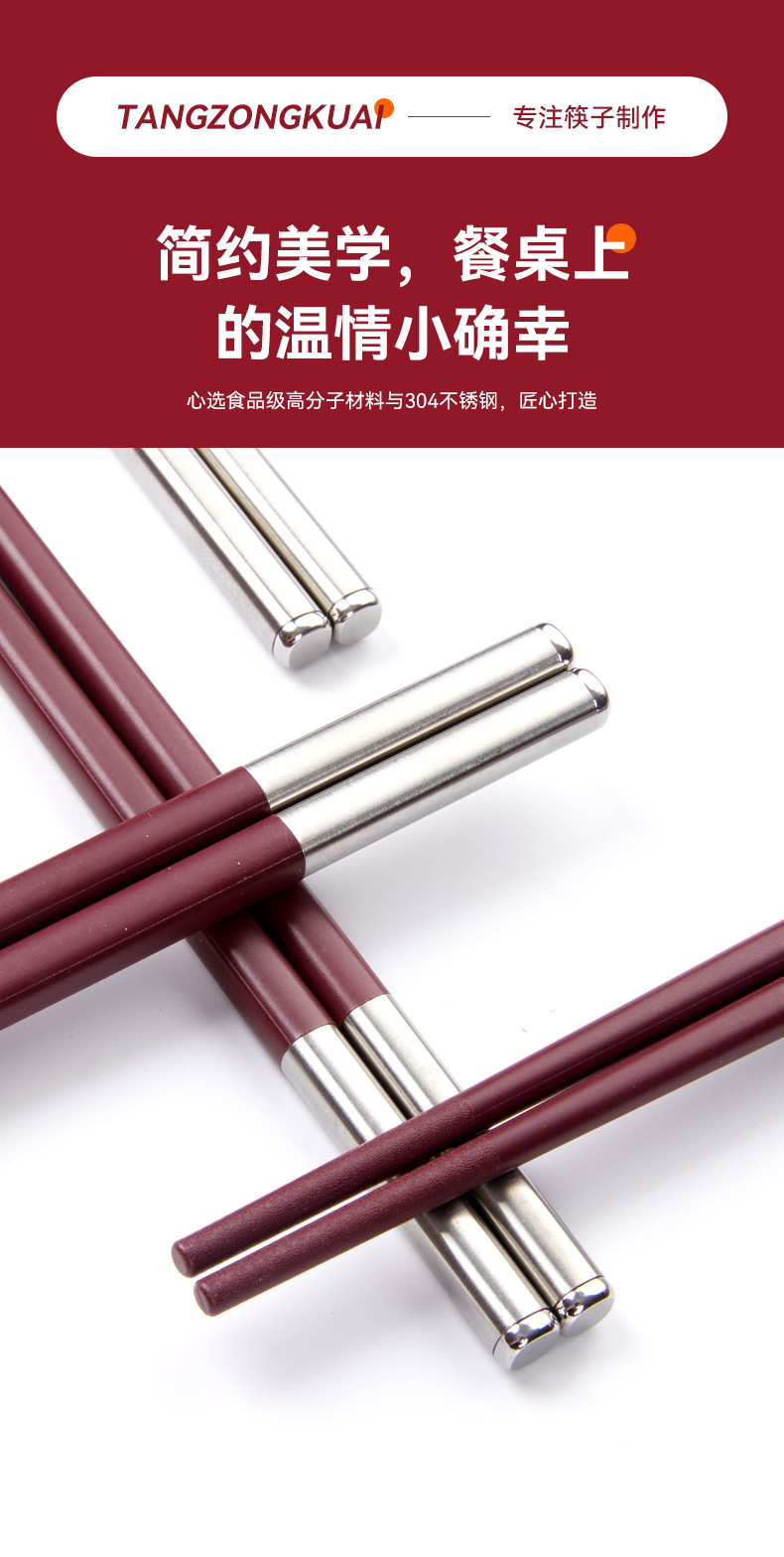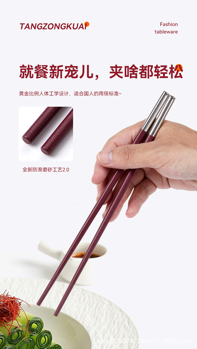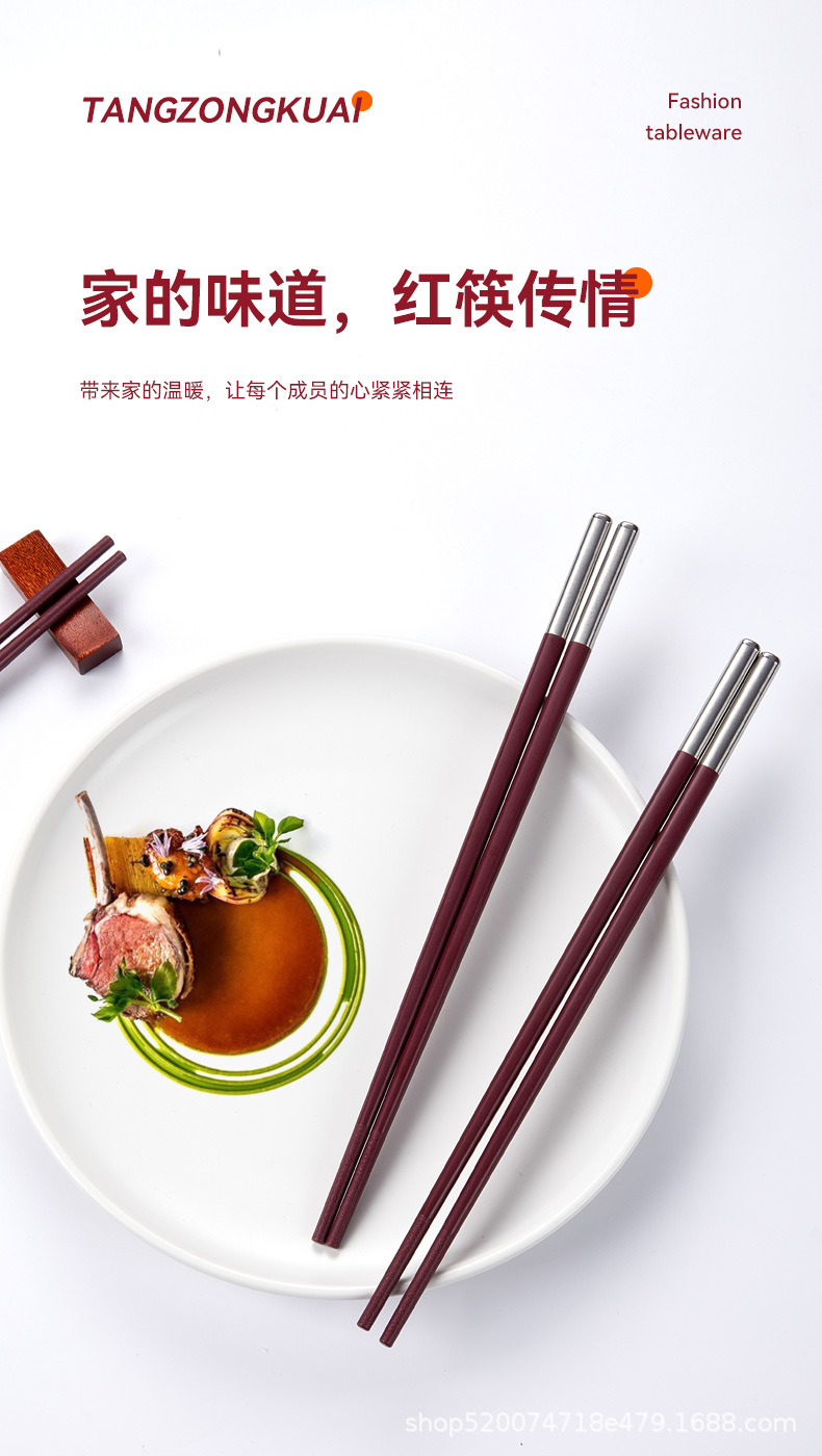 Tangzong 젓가락 가정용 합금 젓가락 Ankola 빨간색 축제 확장 미끄럼 방지 소독제 식기 세척기 젓가락 도매