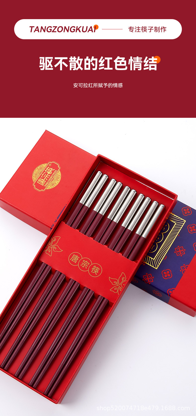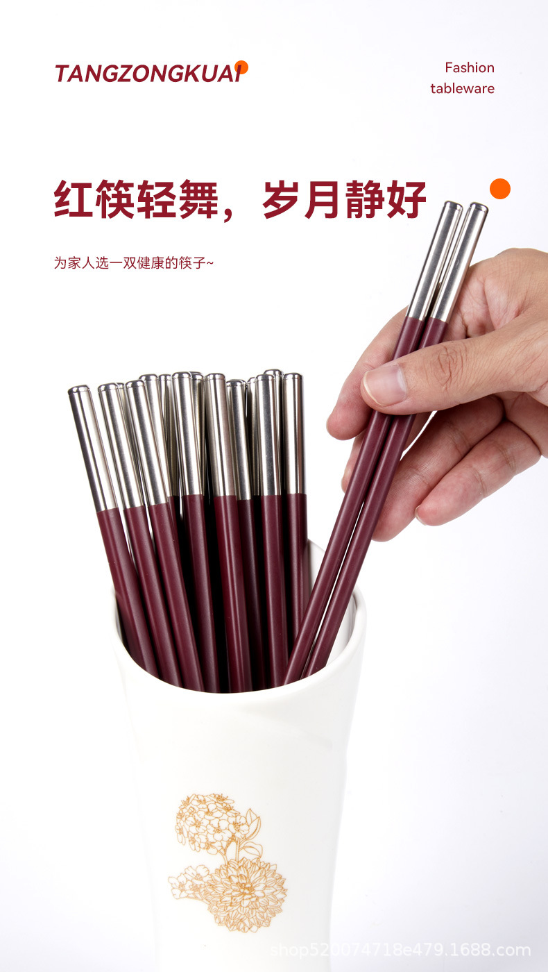 Tangzong 젓가락 가정용 합금 젓가락 Ankola 빨간색 축제 확장 미끄럼 방지 소독제 식기 세척기 젓가락 도매스토어 가기