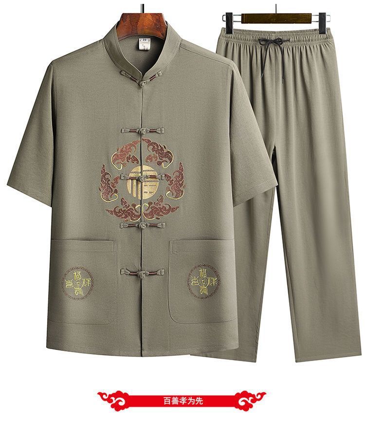 탕 세트 남성 아이스 실크 짧은 소매 세트 여름 얇은 중국 스타일 할아버지 느슨한 옷 중년 및 노인 아버지 여름 옷스토어 가기