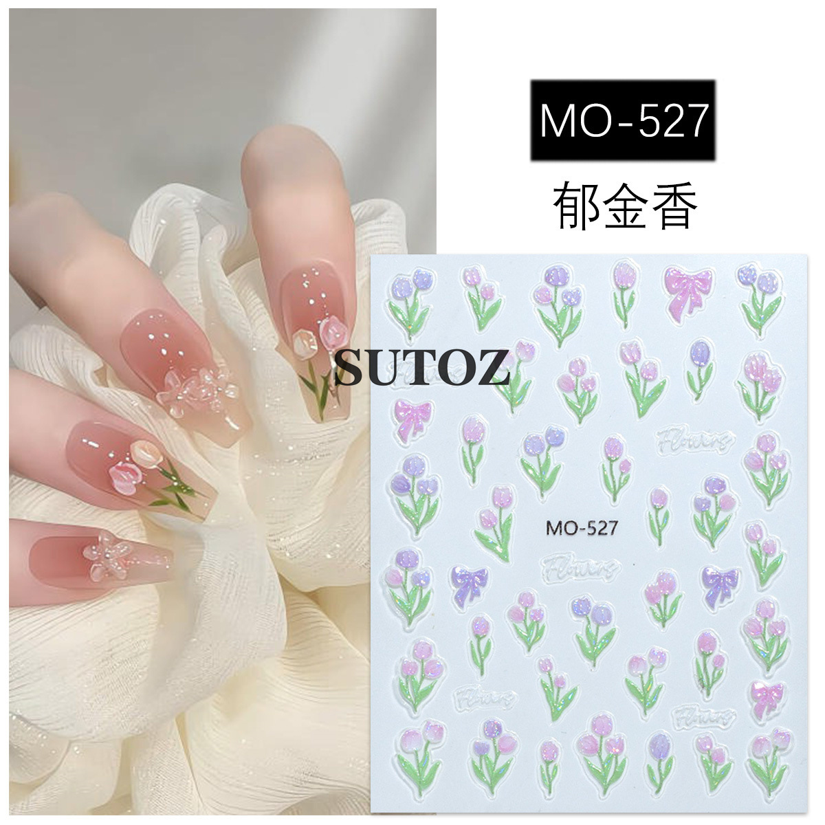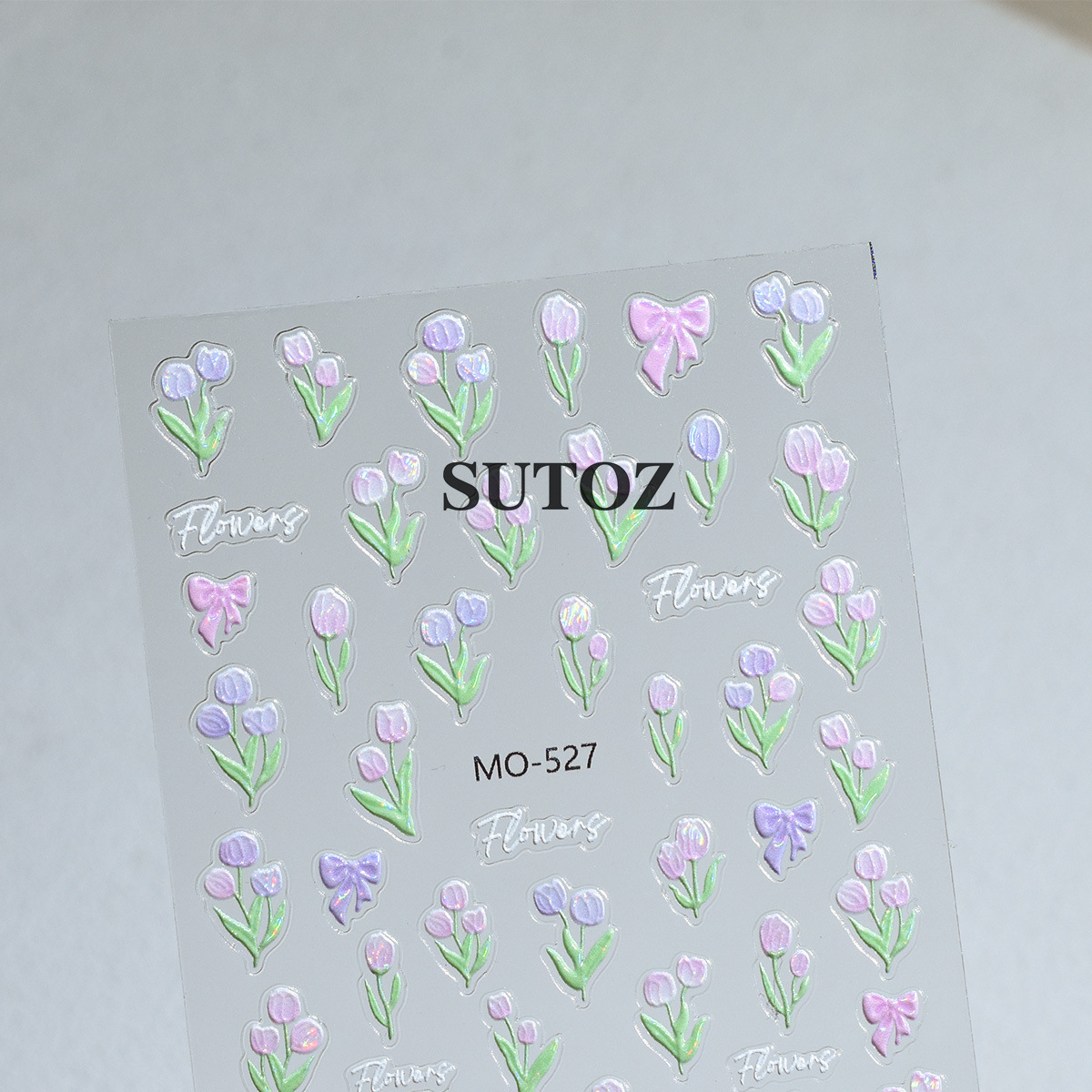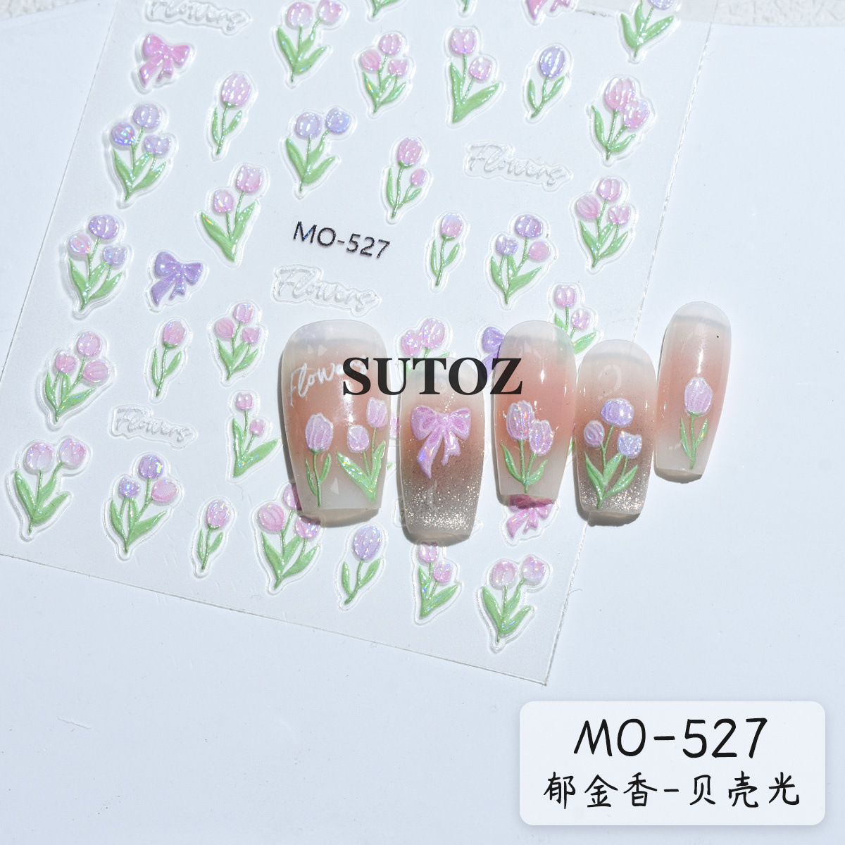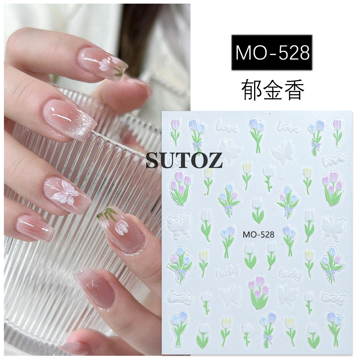 2025 새로운 네일 아트 스티커 작은 고구마 같은 스타일 신선한 쉘 라이트 튤립 엠보싱 네일 백 접착 스티커