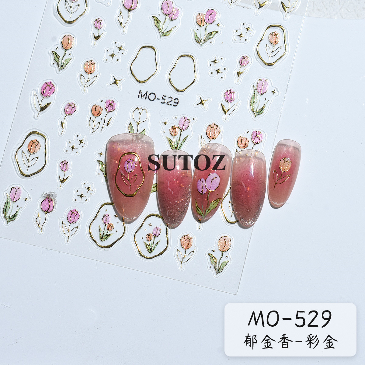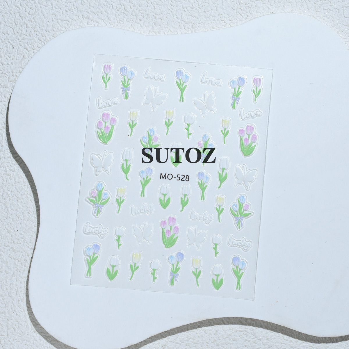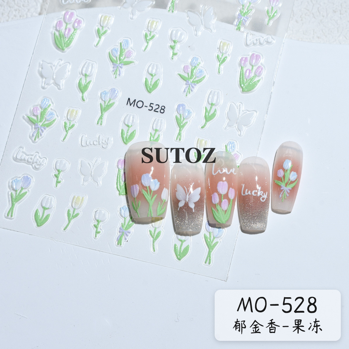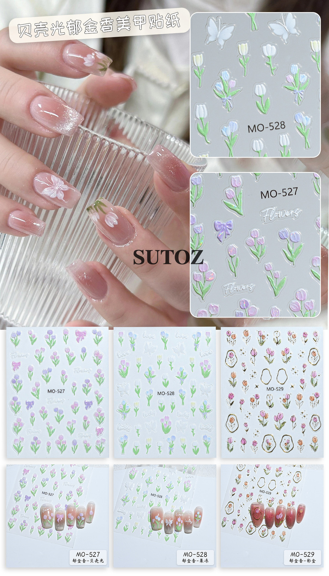 2025 새로운 네일 아트 스티커 작은 고구마 같은 스타일 신선한 쉘 라이트 튤립 엠보싱 네일 백 접착 스티커
