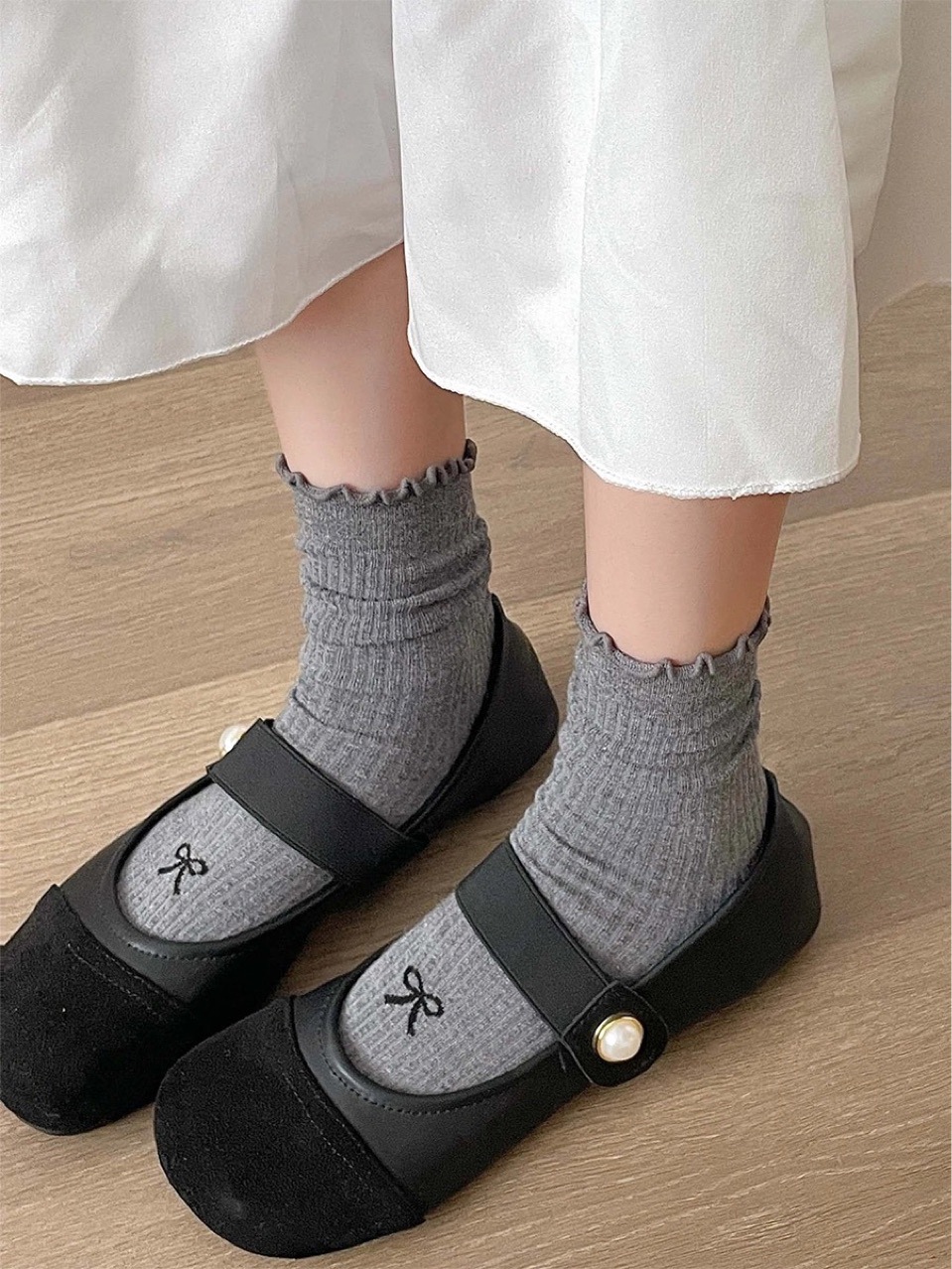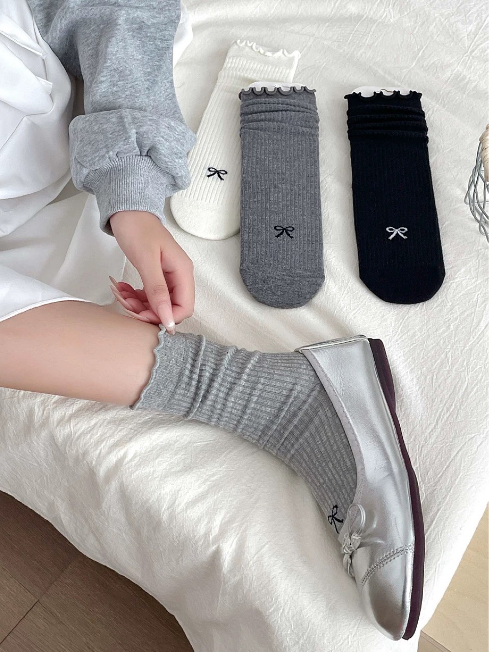 秋冬新品songmu韩国ins灰色丝绒蝴蝶结雪花百搭潮袜棉无骨中筒袜 RMB:4.60