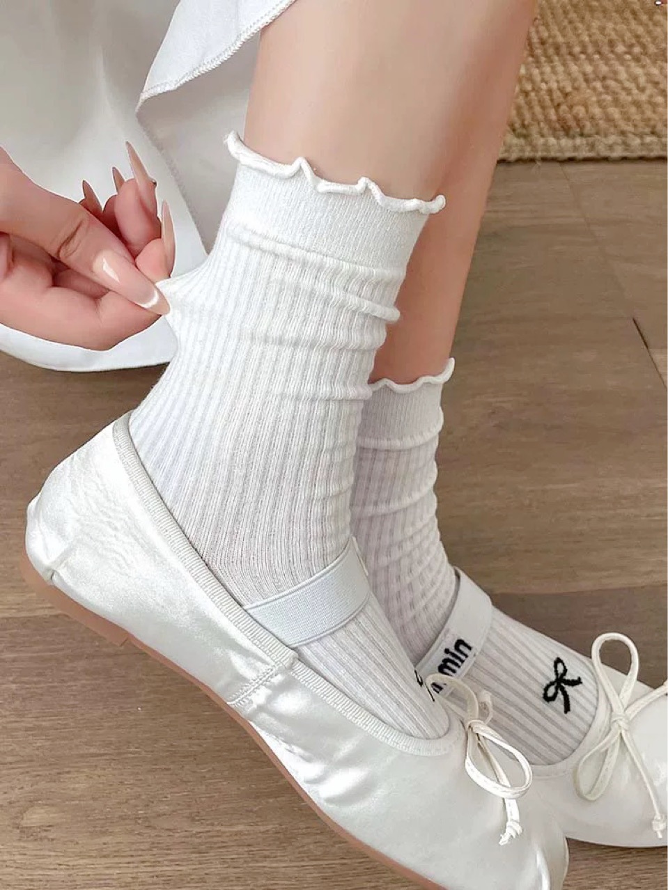 우드 이어 양말 여성의 봄과 여름 미드 튜브 코튼 인 패션 일본 레이스 나비 매듭 스타킹 뼈없는 스타킹