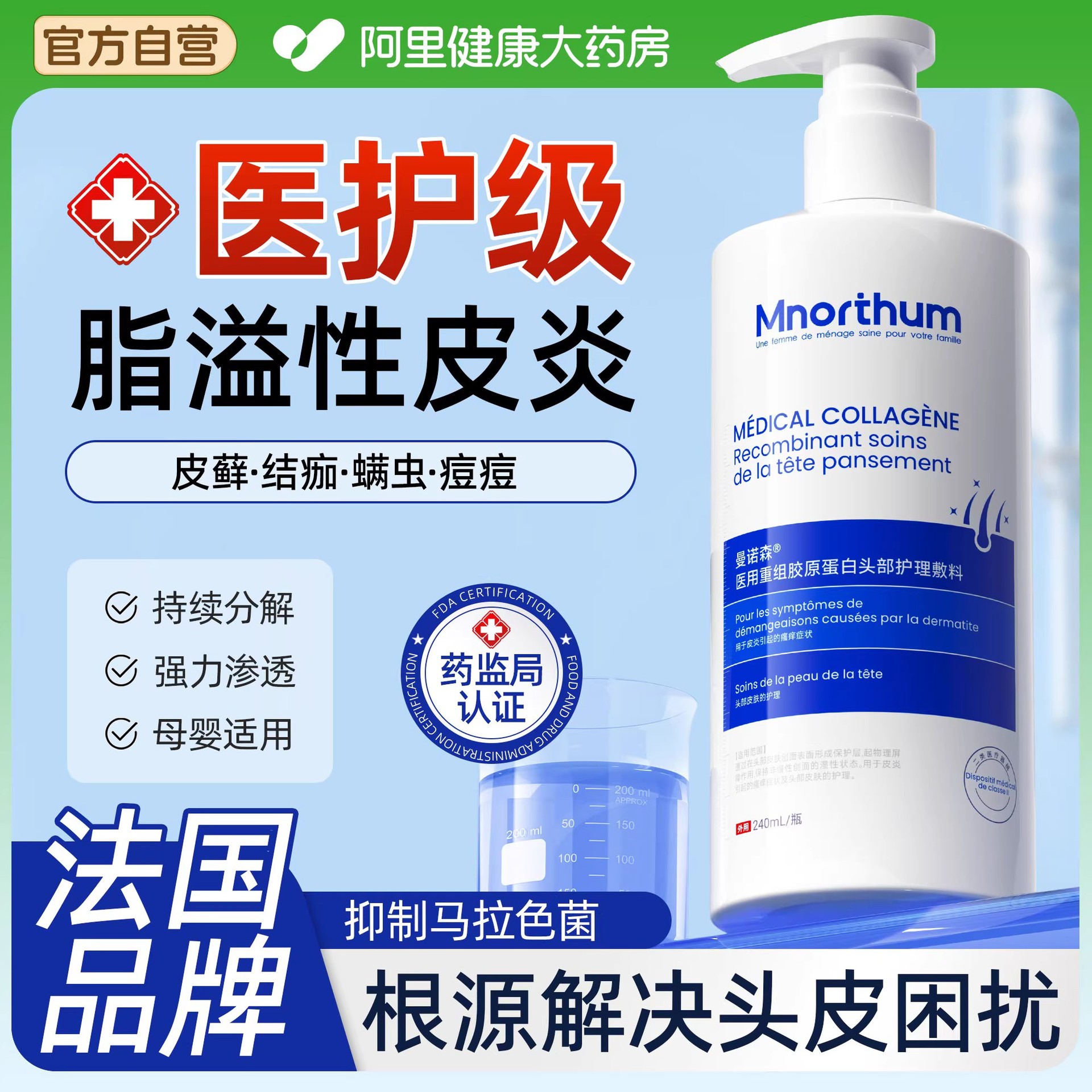 OEM 맞춤형 마노센 의료용 샴푸 재조합 콜라겐 두피 마스크 오일 컨트롤 지원 도매스토어 가기