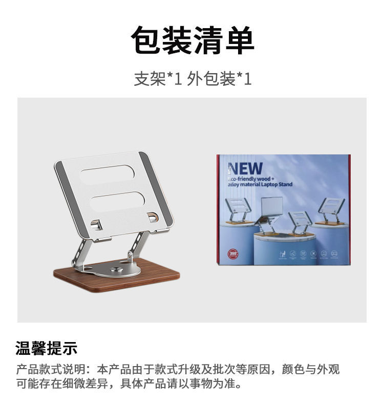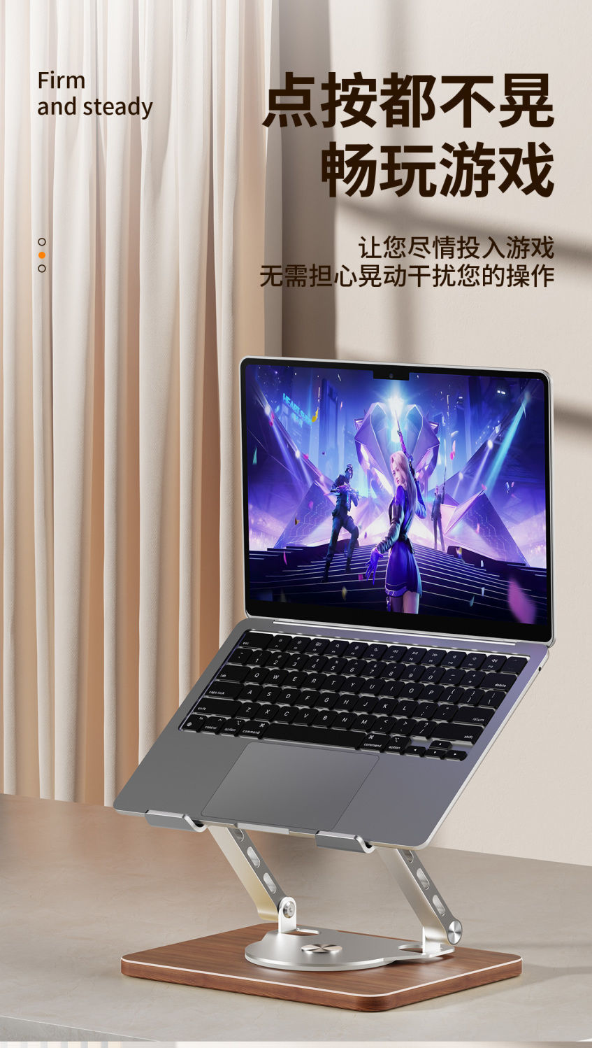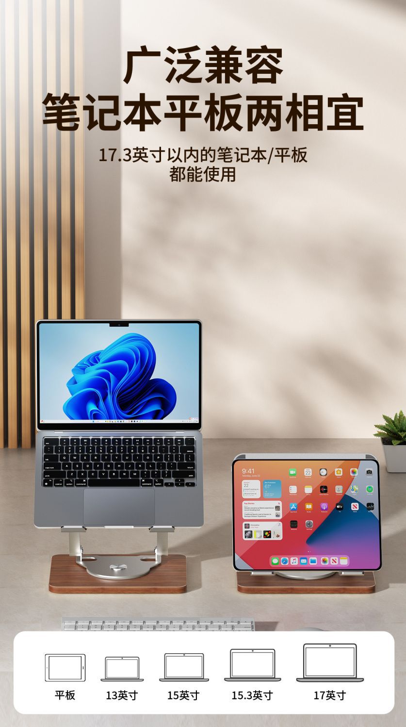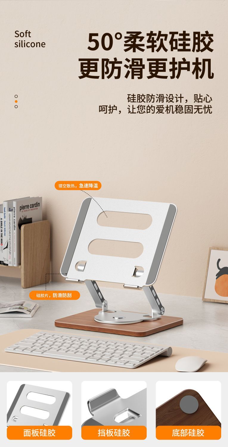360 ° 회전 노트북 브래킷 금속 데스크탑 브래킷 우드 베이스 접이식 리프팅 오피스 링크