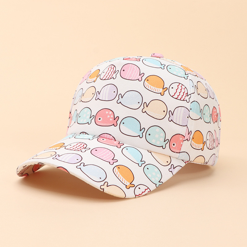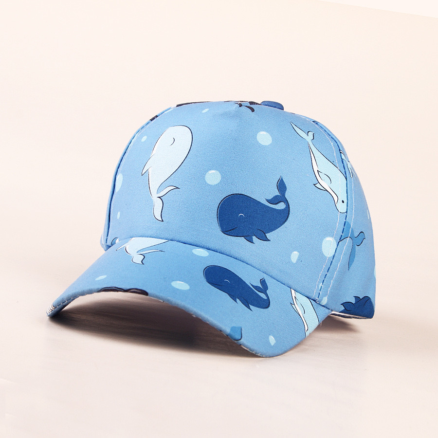 • 파란색 배경 뚱뚱한 고래 - 어린이 야구 모자