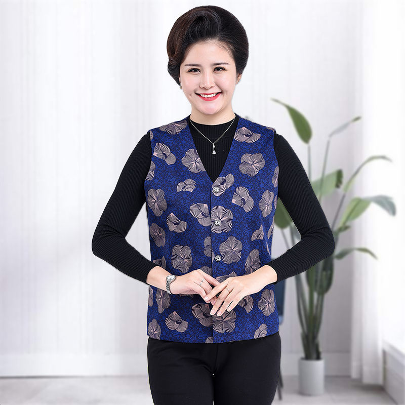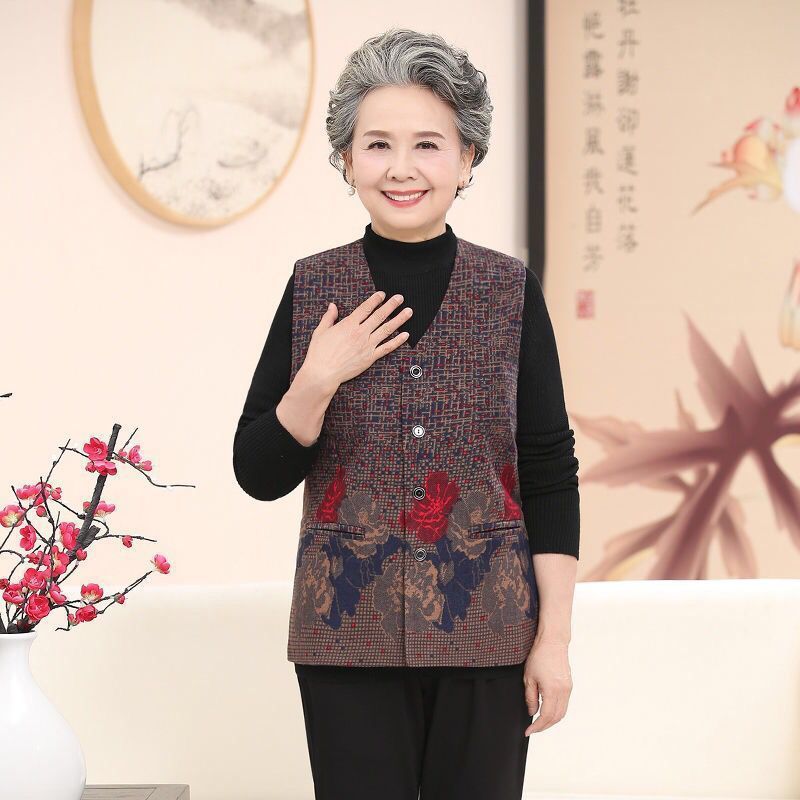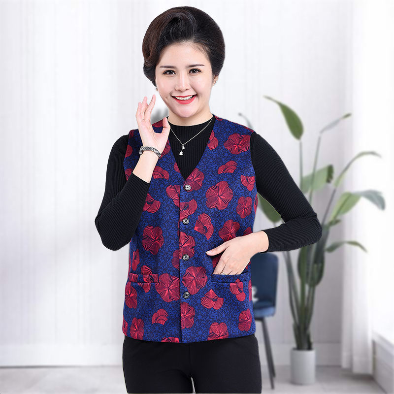 중년 및 노인 조끼 여성의 봄과 가을 새 어머니의 조끼 노인 버튼 조끼 봄과 여름 얇은 코트스토어 가기