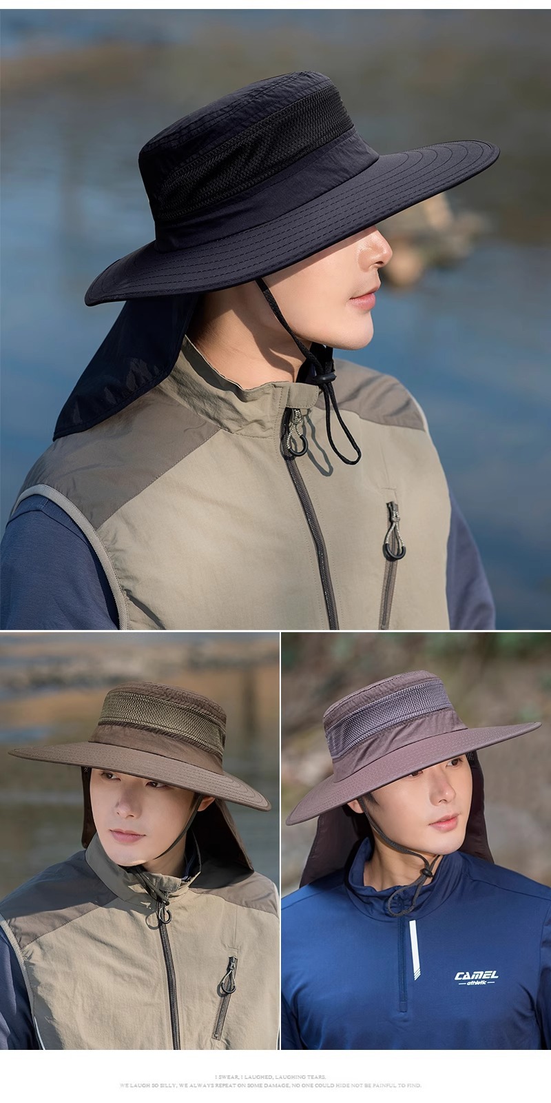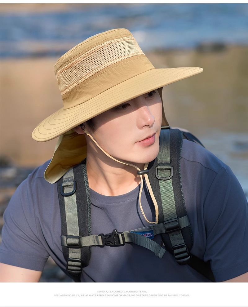 야외 등산 낚시 태양 모자 속건성 어부 모자 태양 보호 모자 남자 여름 사이클링 메쉬 대형 챙 태양 모자