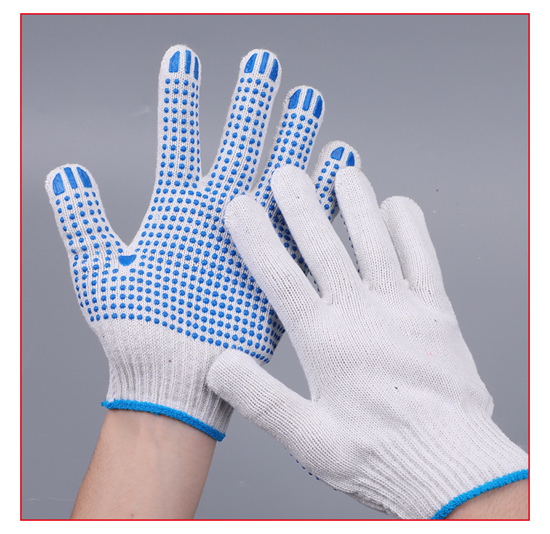 장갑 내마모성 작업 두꺼운 면사 목구멍 미끄럼 방지 접착제-현장에서 남성과 여성을위한 노동 얇은 작업 장갑