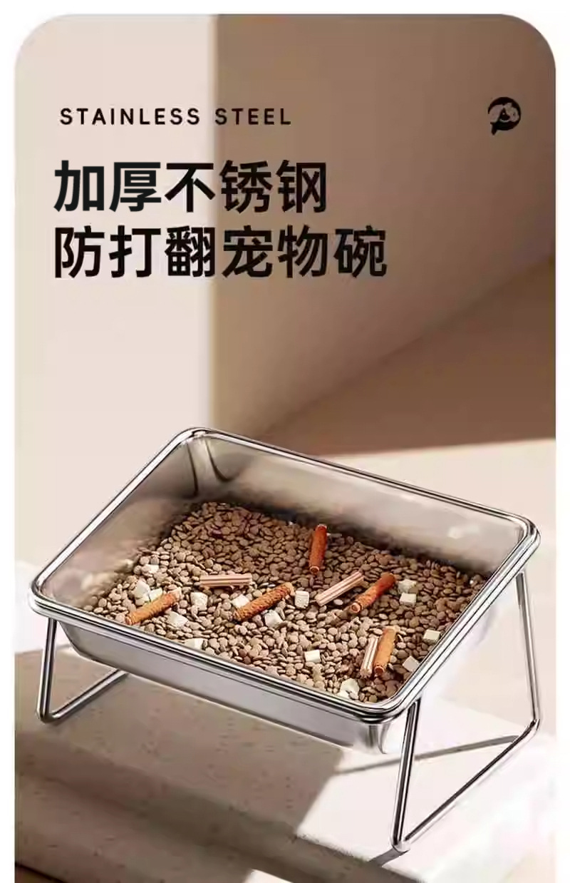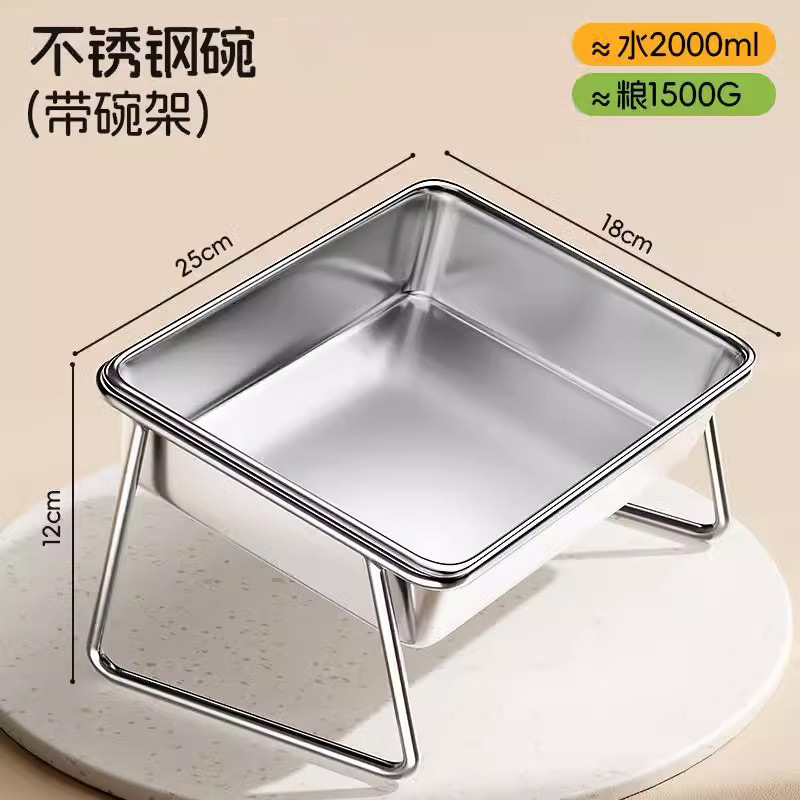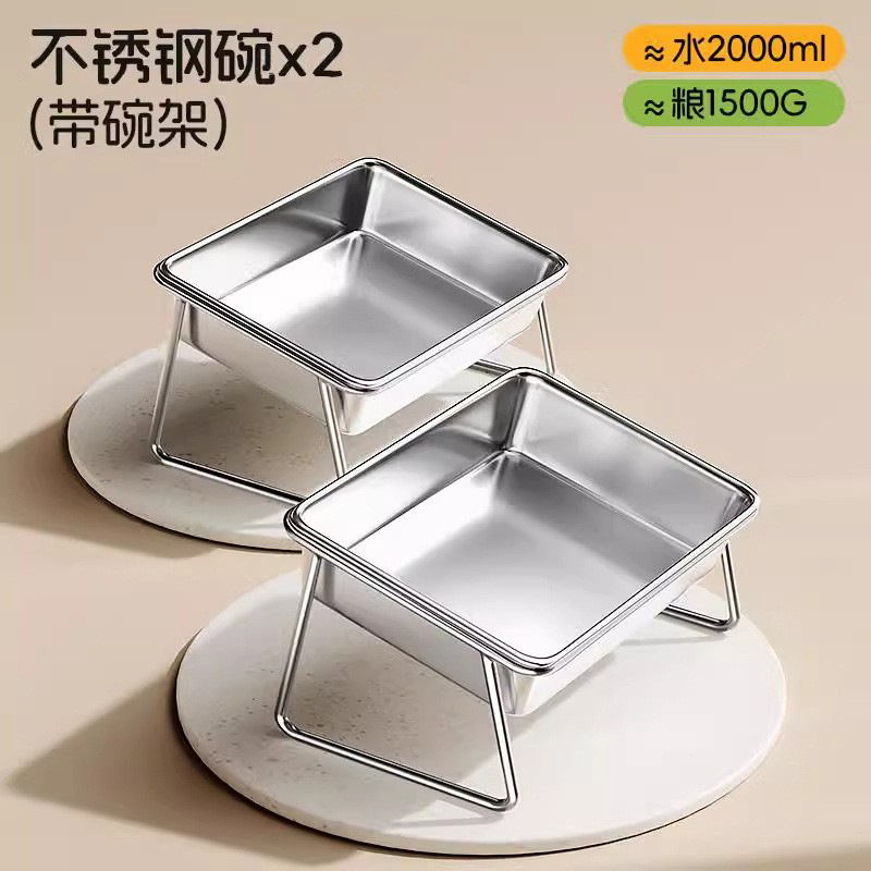 고양이 그릇 개 그릇 스테인리스 더블 볼 개 음식 분지 브래킷이 달린 고양이 물 그릇 안티 노크 애완 동물 용품 목 보호 쌀 분지