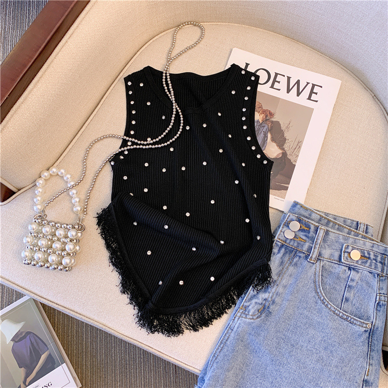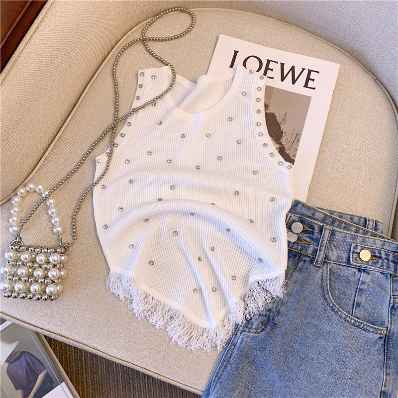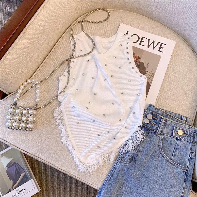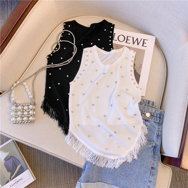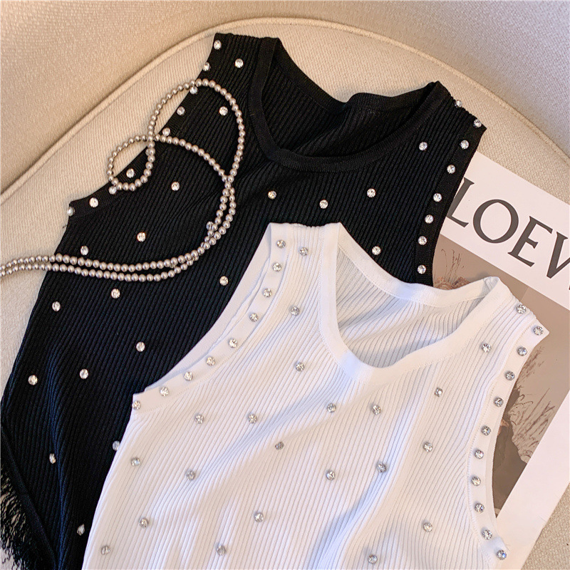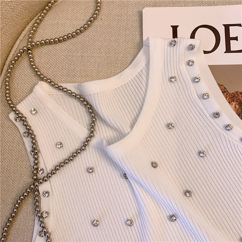 화이트 비드 카미 솔 여성의 여름 내부 베이스 슬림 핏 디자인 틈새 민소매 통통한 탑스토어 가기