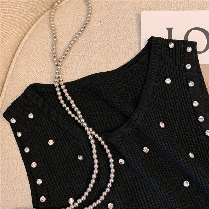 화이트 비드 카미 솔 여성의 여름 내부 베이스 슬림 핏 디자인 틈새 민소매 통통한 탑