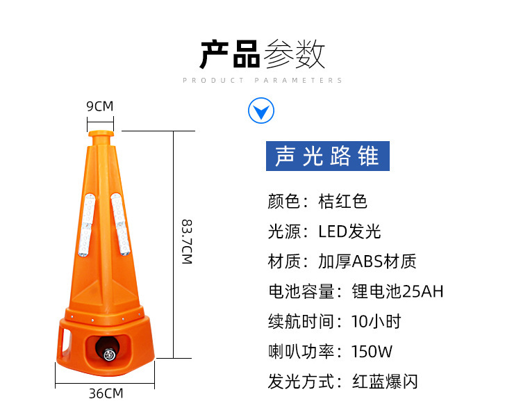 고속 유지 보수 건설 소리 및 빛 로드 콘 알람 LED 플래시 경고 로드 콘 라이트(호루라기 포함) 충전식스토어 가기