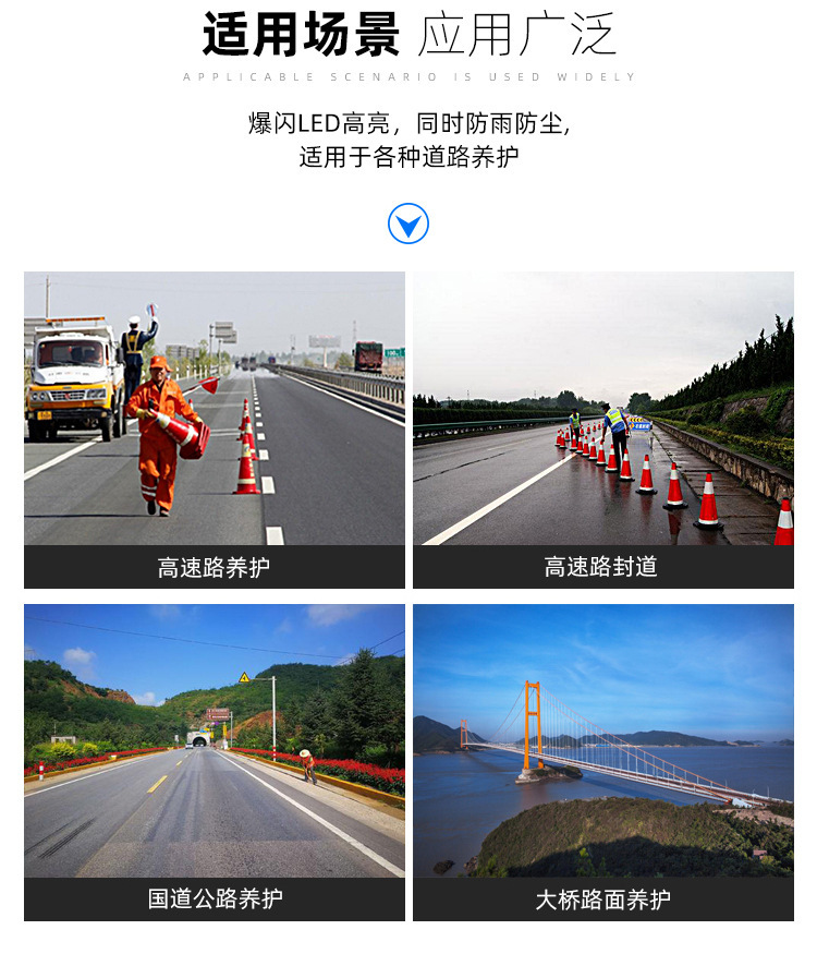 고속 유지 보수 건설 소리 및 빛 로드 콘 알람 LED 플래시 경고 로드 콘 라이트(호루라기 포함) 충전식