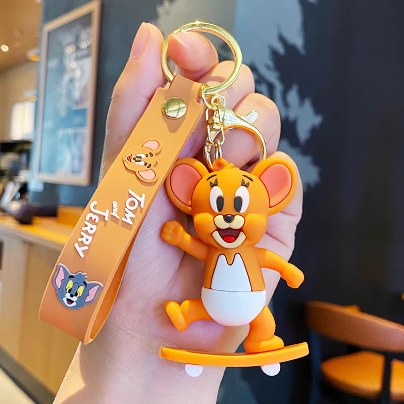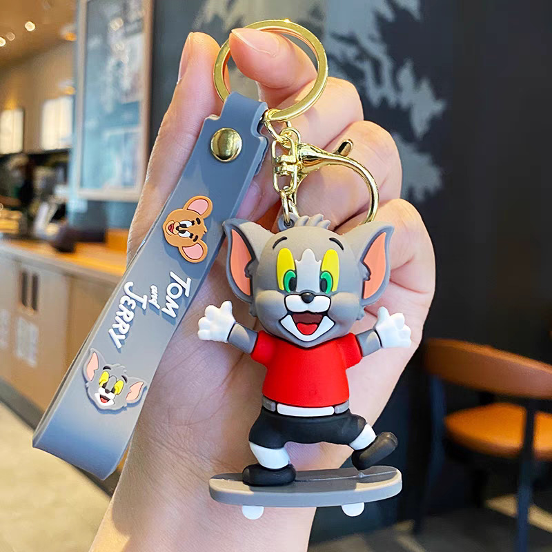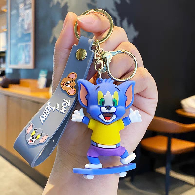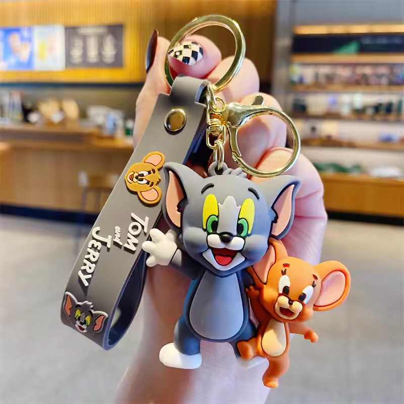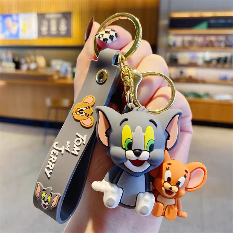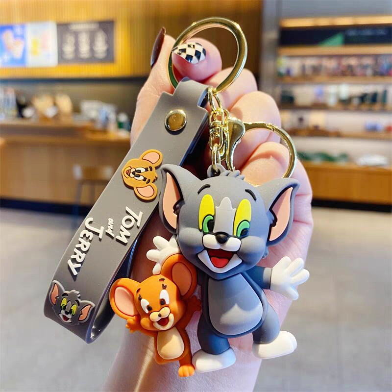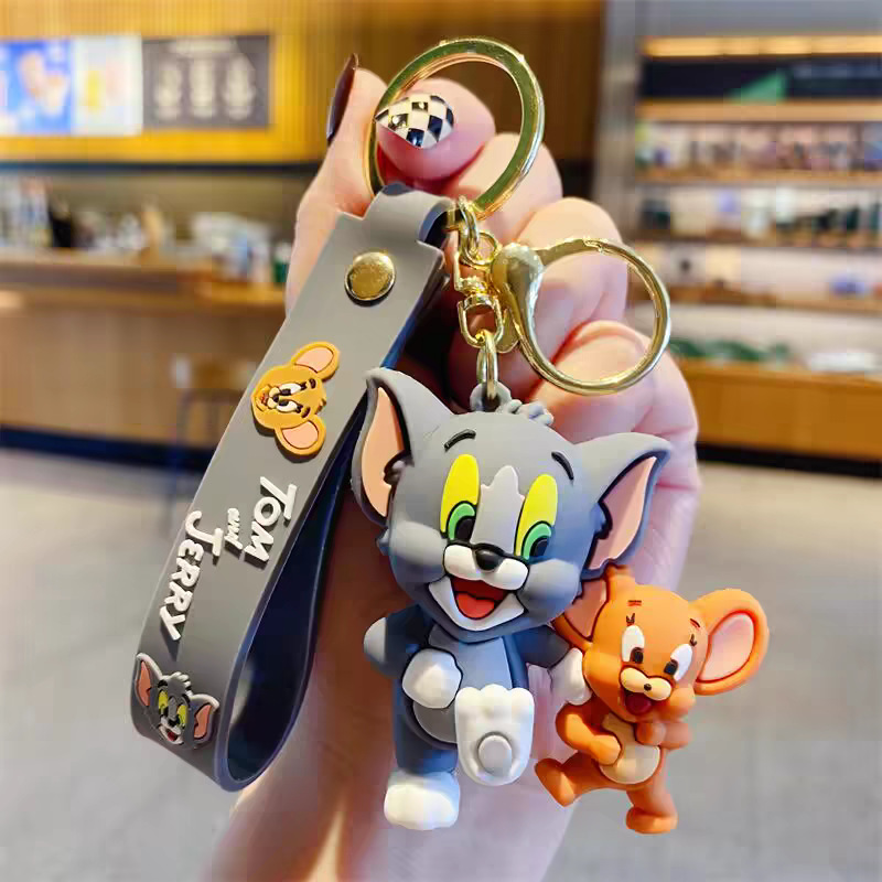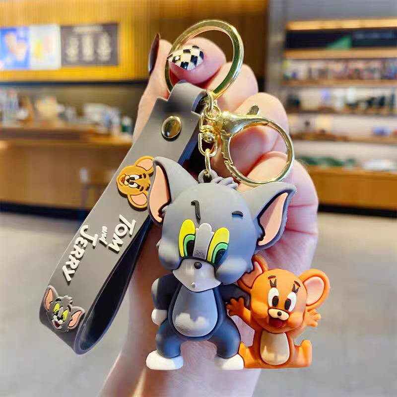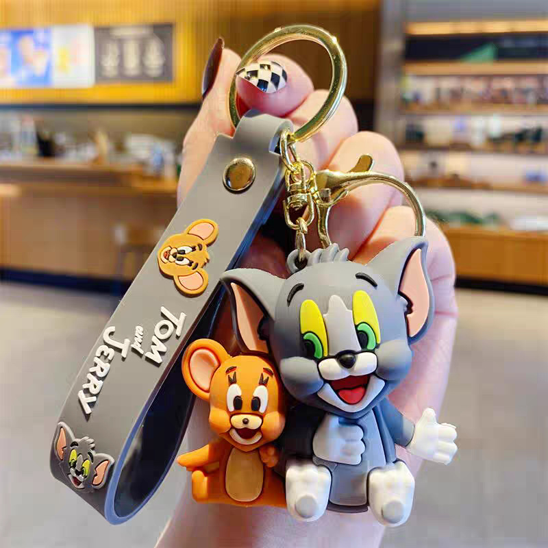 국경 간 고양이와 마우스 키 체인 학교 가방 펜던트 톰 고양이 pvc 소프트 접착제 키 체인 제리 인형스토어 가기