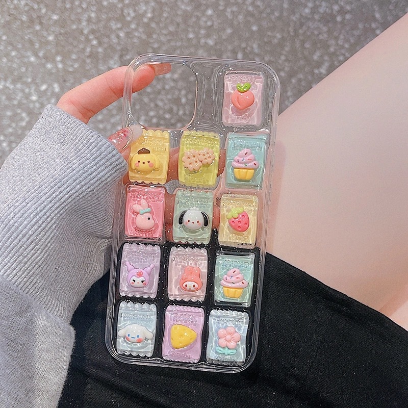 애플을위한 3 차원 산리오 캔디 14 15promax 귀여운 전화 케이스 16pro girly 13 방울 접착제스토어 가기