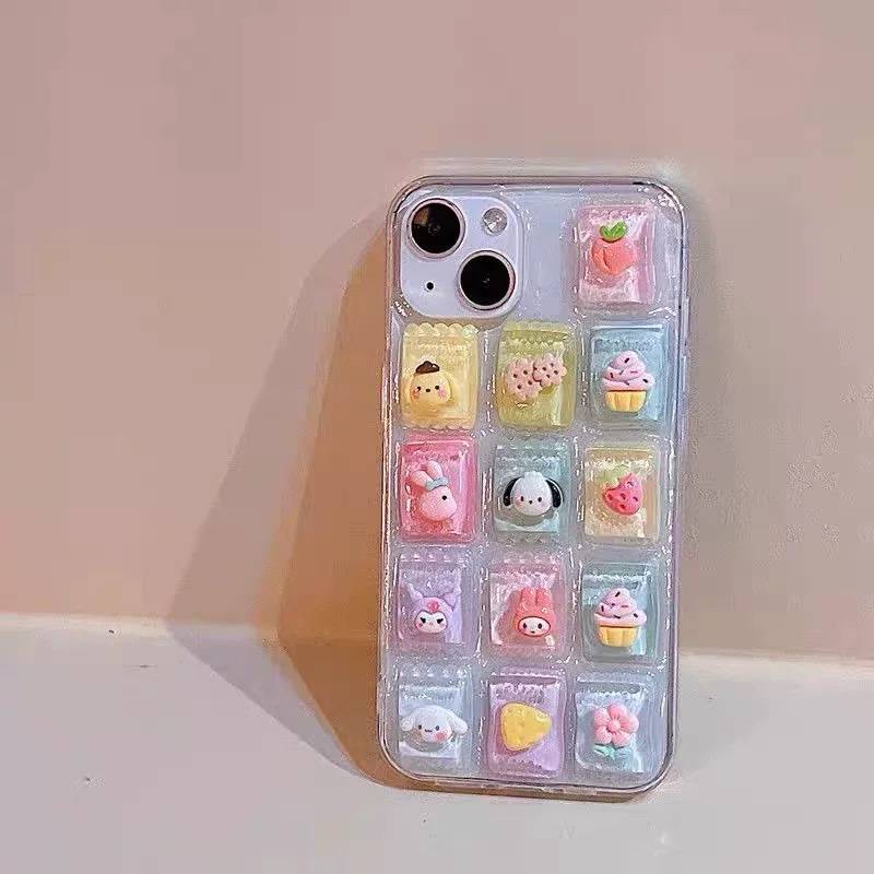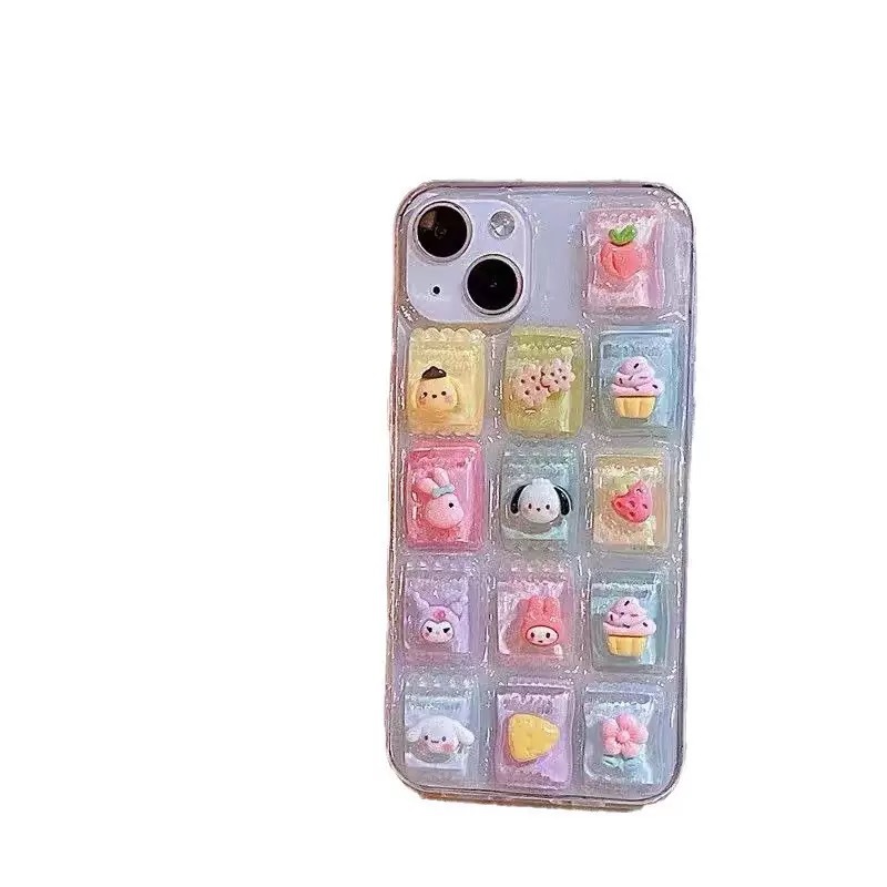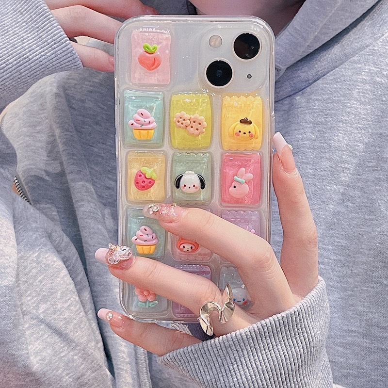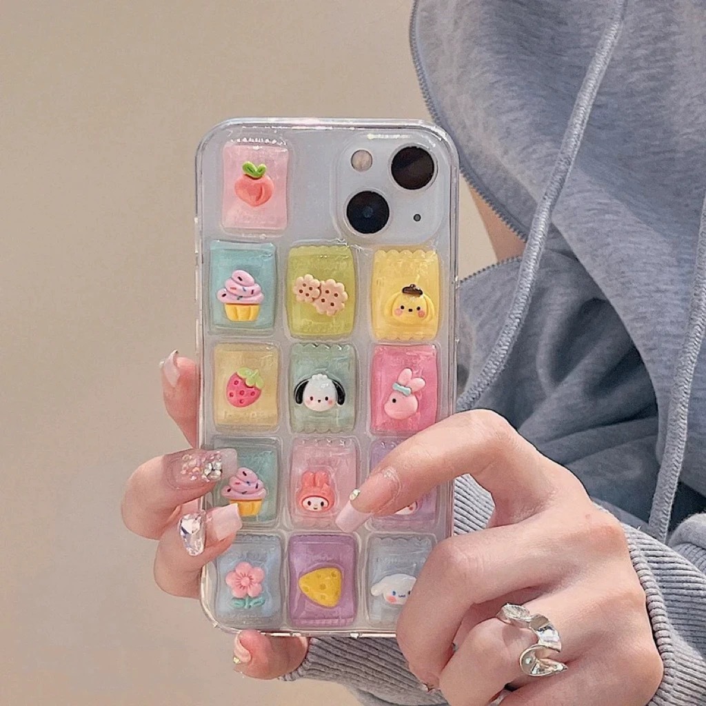 애플을위한 3 차원 산리오 캔디 14 15promax 귀여운 전화 케이스 16pro girly 13 방울 접착제