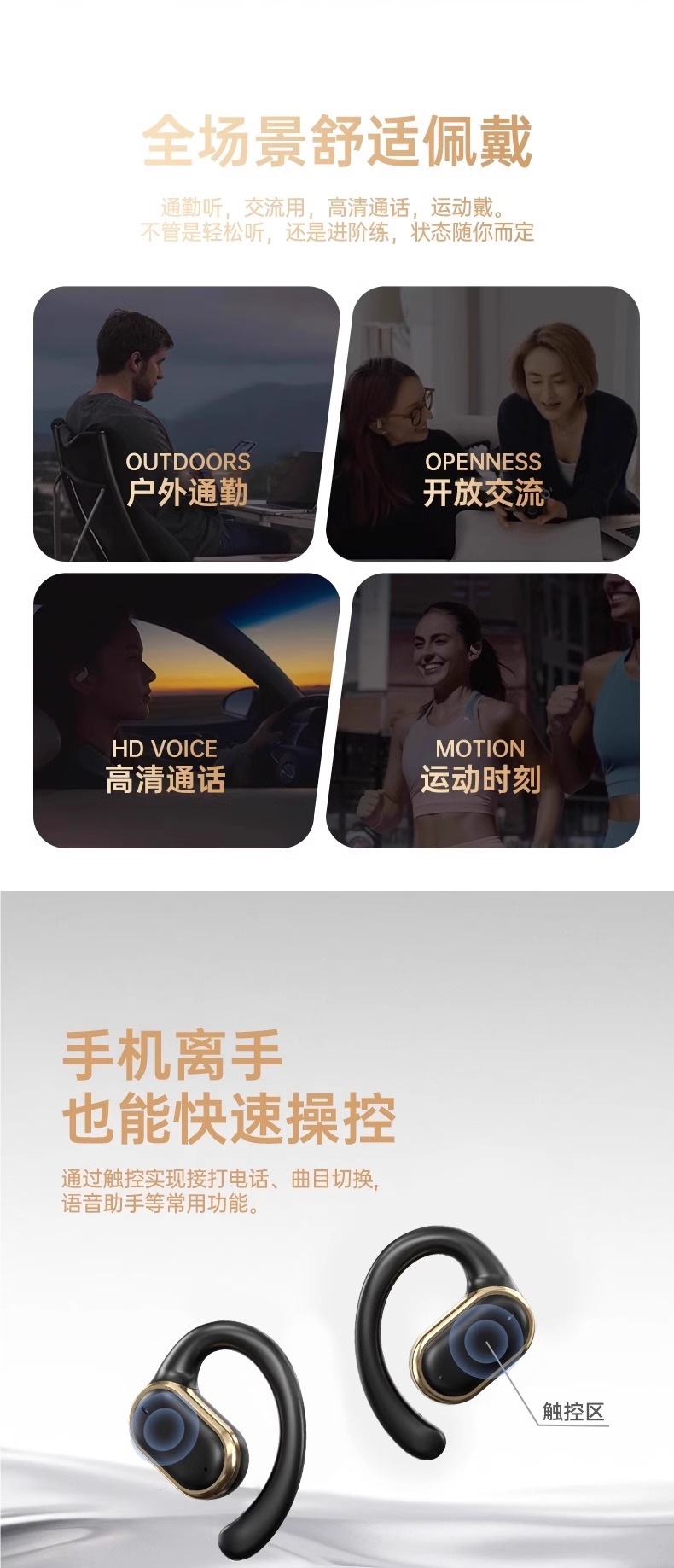 2025 새로운 뼈 전도 블루투스 헤드셋 무선 귀 매달려 2024 공식 브랜드 긴 내구성