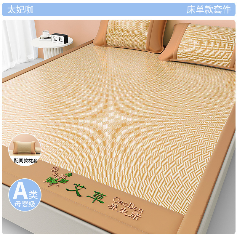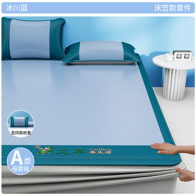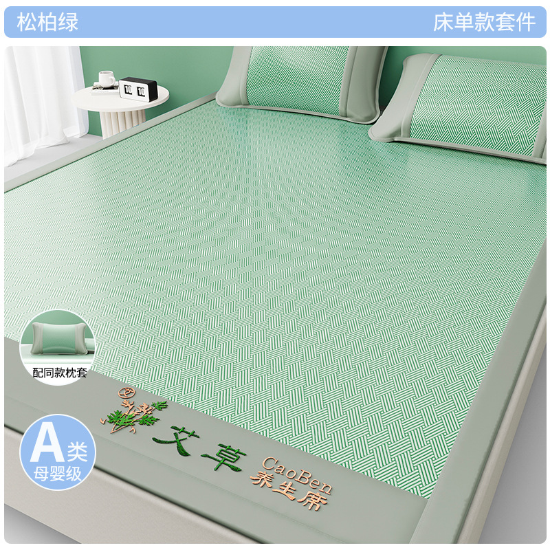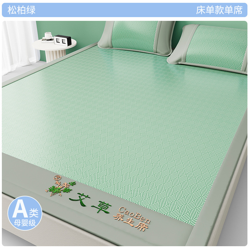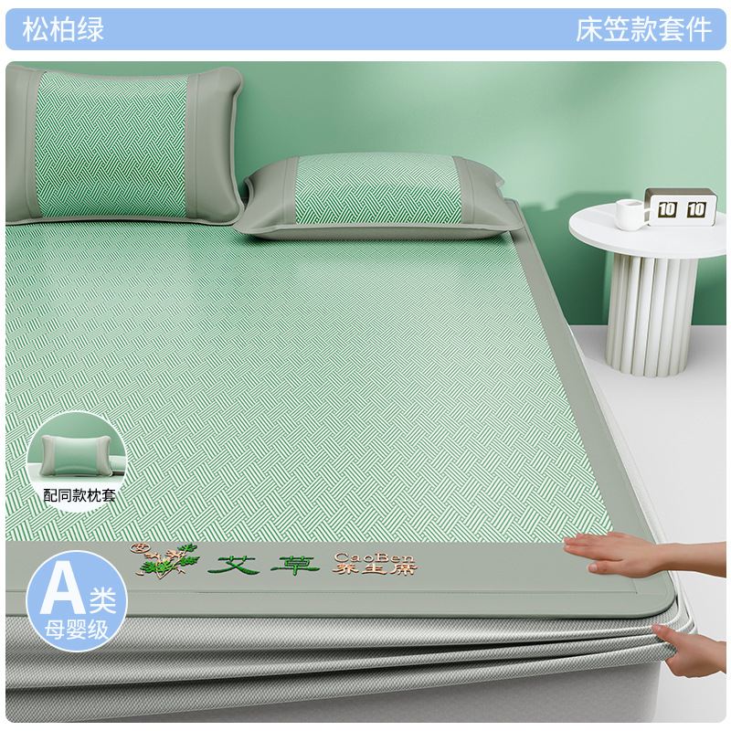 艾草凉席夏天驱蚊抑菌草席床垫可折叠软席床笠可机洗家用冰丝席子