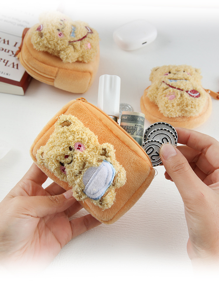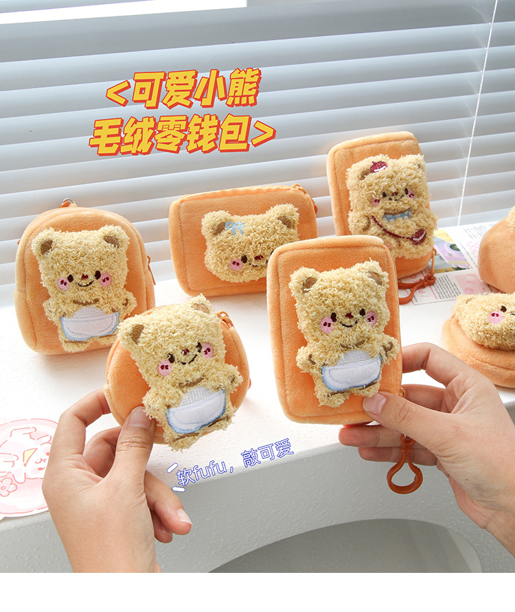 만화 귀여운 곰 봉제 여성 미니 동전 지갑 학생 학교 가방 키 체인 펜던트 휴대용 헤드셋 가방스토어 가기