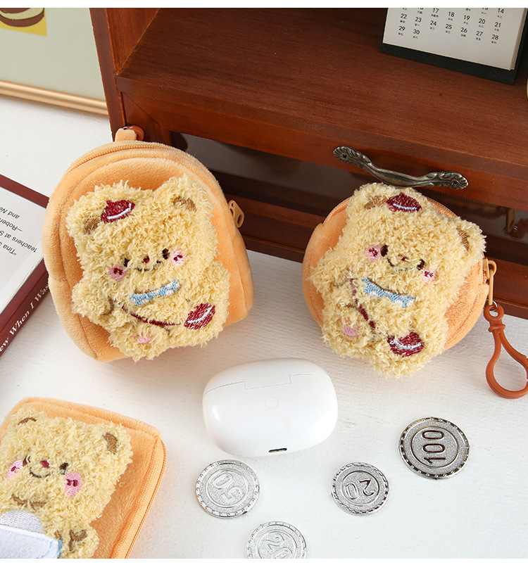 만화 귀여운 곰 봉제 여성 미니 동전 지갑 학생 학교 가방 키 체인 펜던트 휴대용 헤드셋 가방